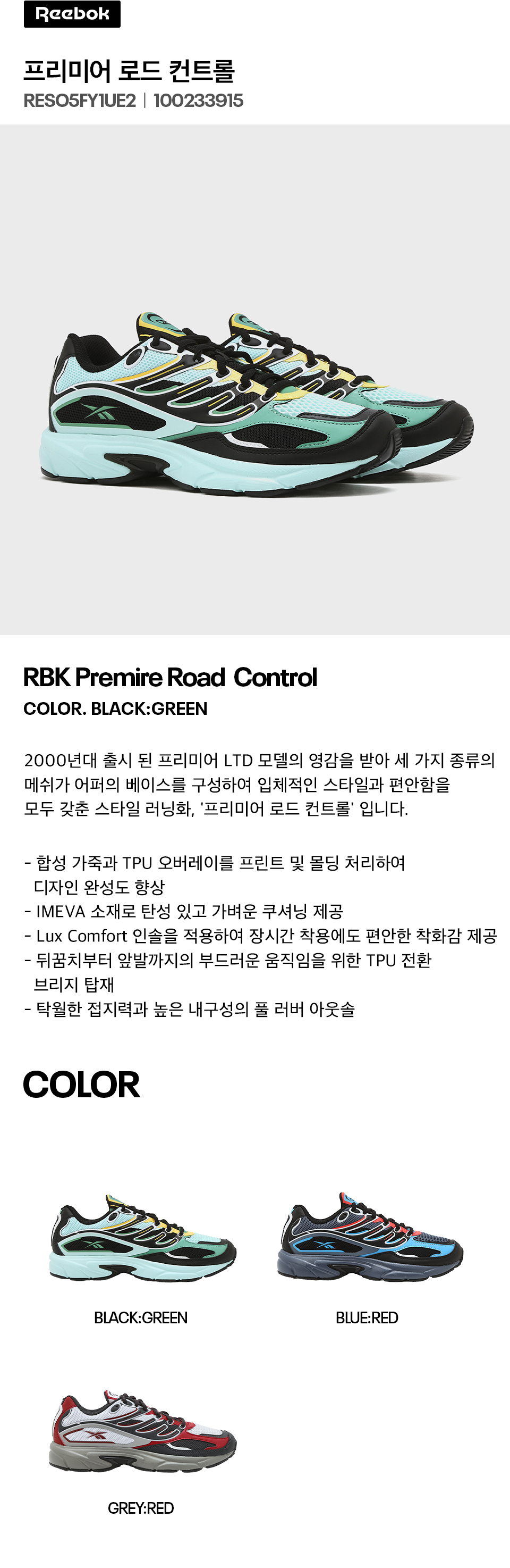 리복 프리미어 로드 컨트롤 블랙 그린