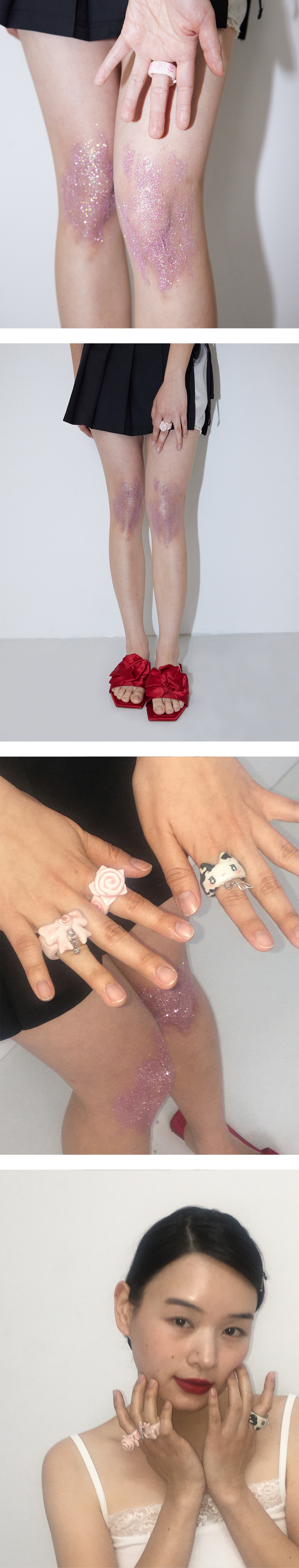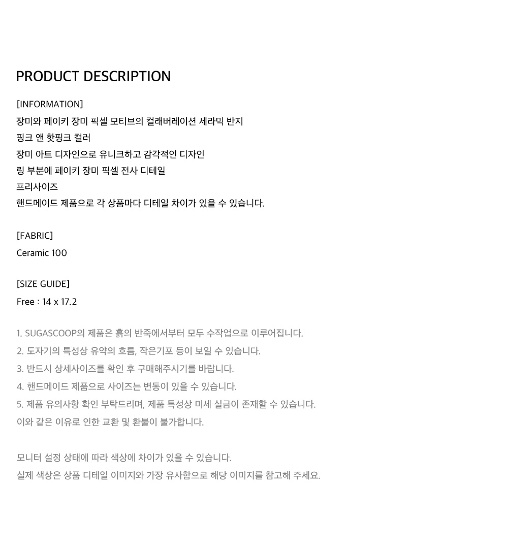 장미와 페이키 장미 픽셀 모티브의 컬래버레이션 세라믹 반지, 핑크 앤 핫핑크 컬러, 장미 아트 디자인으로 유니크하고 감각적인 디자인, 링 부분에 페이키 장미 픽셀 전사 디테일, 프리사이즈 , *핸드메이드 제품으로 각 상품마다 디테일 차이가 있을 수 있습니다.