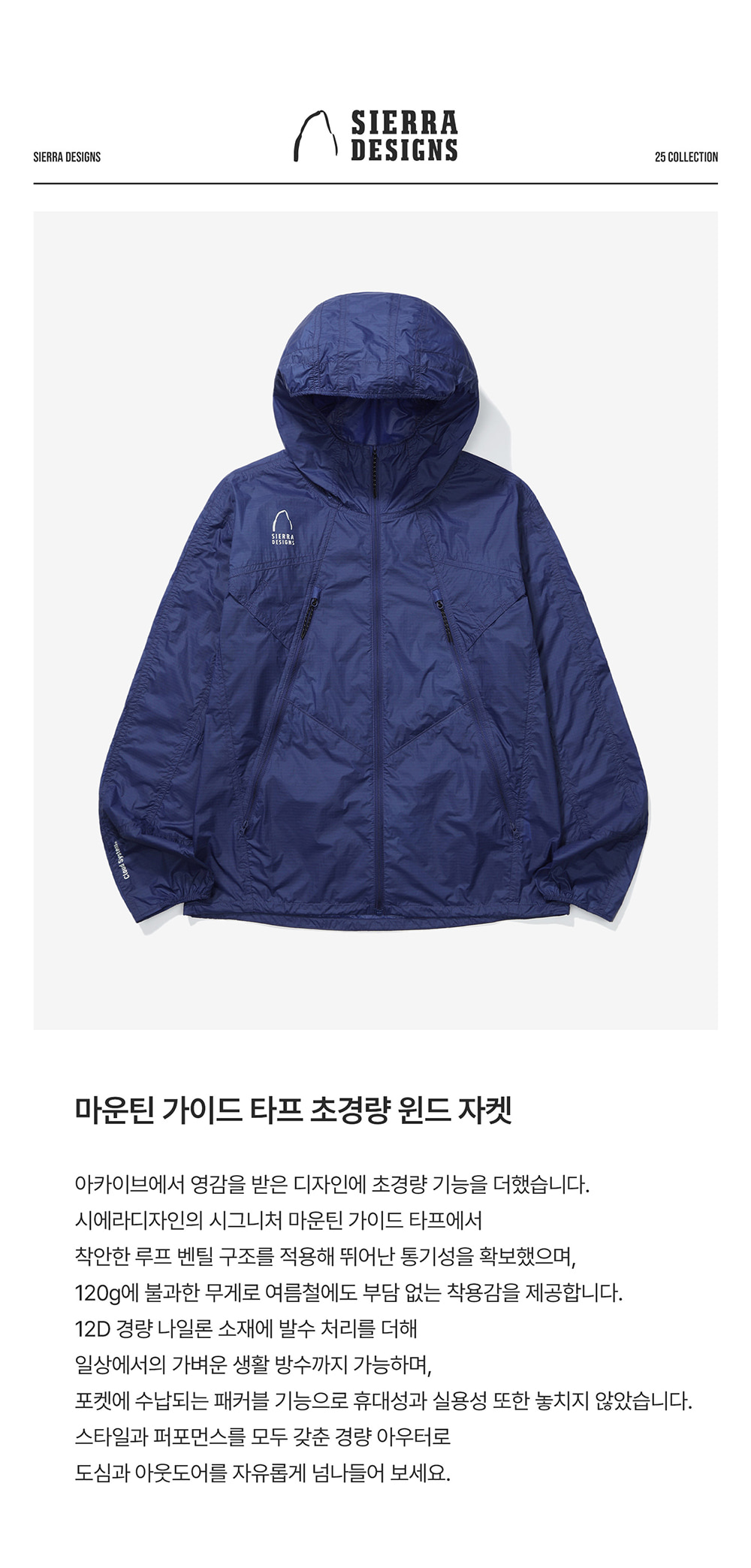 시에라디자인 우먼 마가타 초경량 윈드 자켓 블루