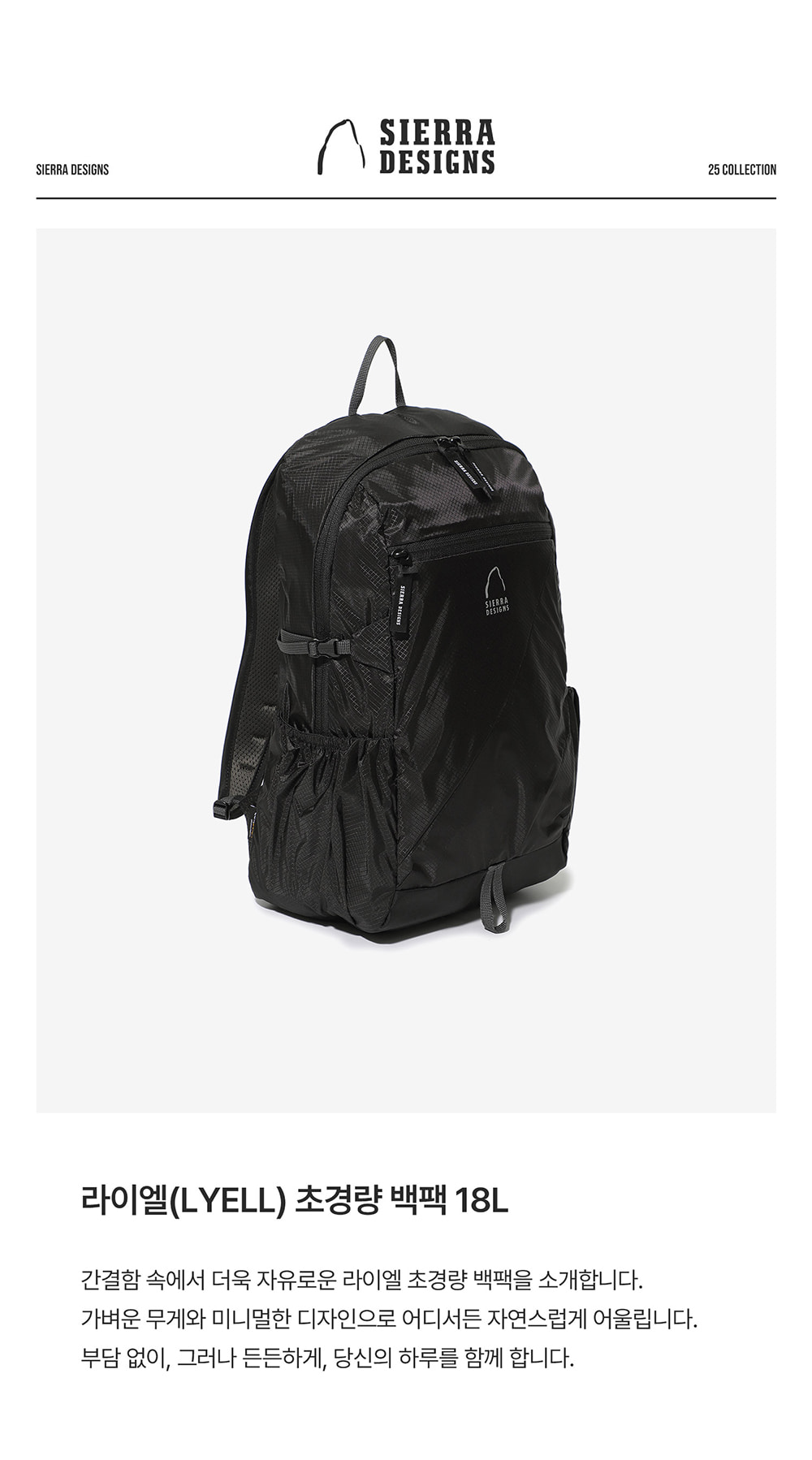 시에라디자인 라이엘 초경량 백팩 18L 블랙