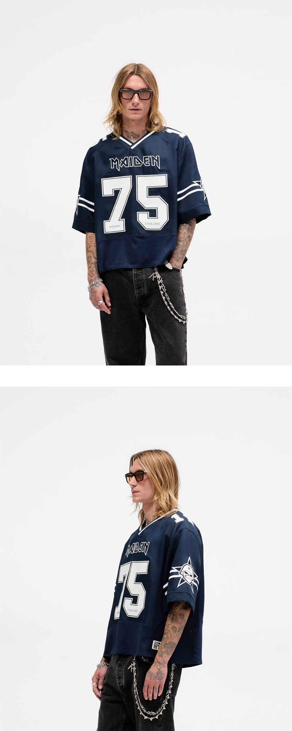 클래식한 아메리칸 풋볼 실루엣을 대담하게 재해석하여 Maiden England의 유산에 헌정을 담은 리프레젠트 x 아이언 메이든 기념 저지 미드 블루 컬러입니다. -미드 블루 컬러웨이 -아메리칸 풋볼에서 영감을 받은 실루엣 -아플리케, 프린트, 자수로 표현된 Iron Maiden 그래픽 -리브드 V넥 칼라 -메쉬와 우븐 패브릭 조합의 구조 -밑단의 Iron Maiden 우븐 라벨 -오버사이즈 박시 핏 *모델은 185cm, 78kg이며 M 사이즈를 착용했습니다*
