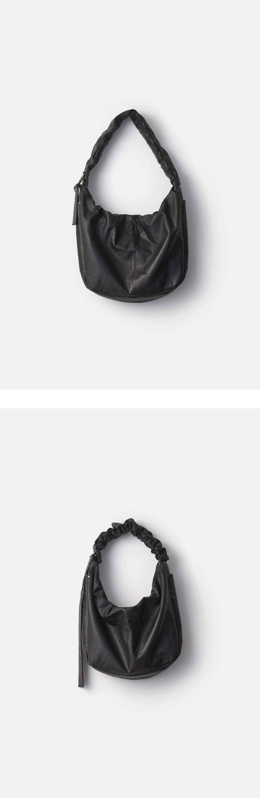 Ssstein Shirring Handle Leather Shoulder Bag Black - 25FW