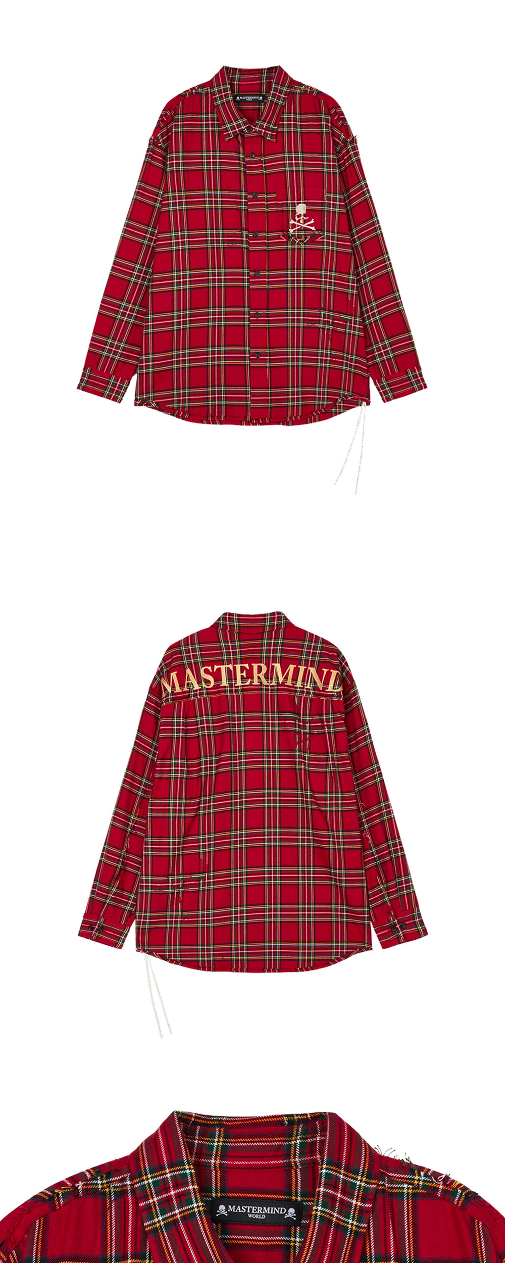 러프한 디테일들이 유니크한 마스터마인드 월드 리버시블 로우 엣지 플레이드 셔츠 레드 컬러입니다. - 가슴 패치 포켓 시그니처 스컬 자수 디테일 - 소매 투 버튼 배럴 - 전면 버튼 클로저 - 셔츠 밑단 로고 프린트 테슬 디테일 - 후면 상단 골드 톤 로고 자수 - 마감처리 하지 않은 자연스러운 컷팅 디테일 - 노출된 봉제선으로 빈티지한 무드 연출
