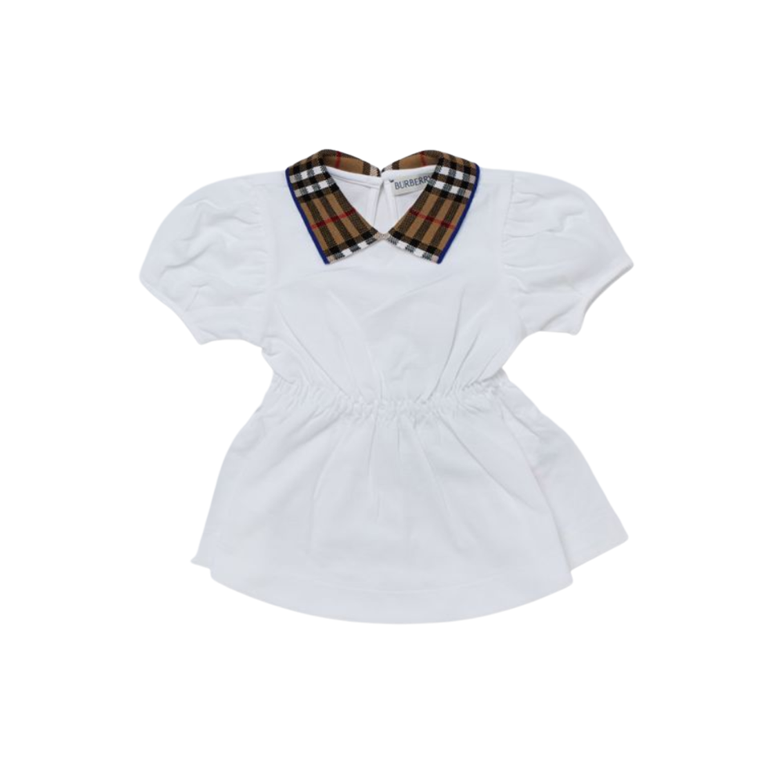(유아) 버버리 체크 칼라 코튼 폴로 셔츠 드레스 화이트