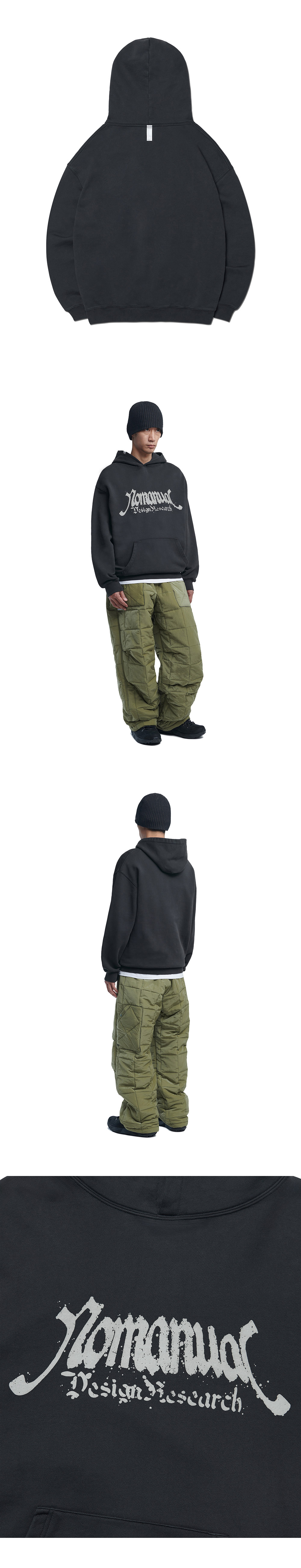 노매뉴얼 P.N.L 후디 워시드 블랙