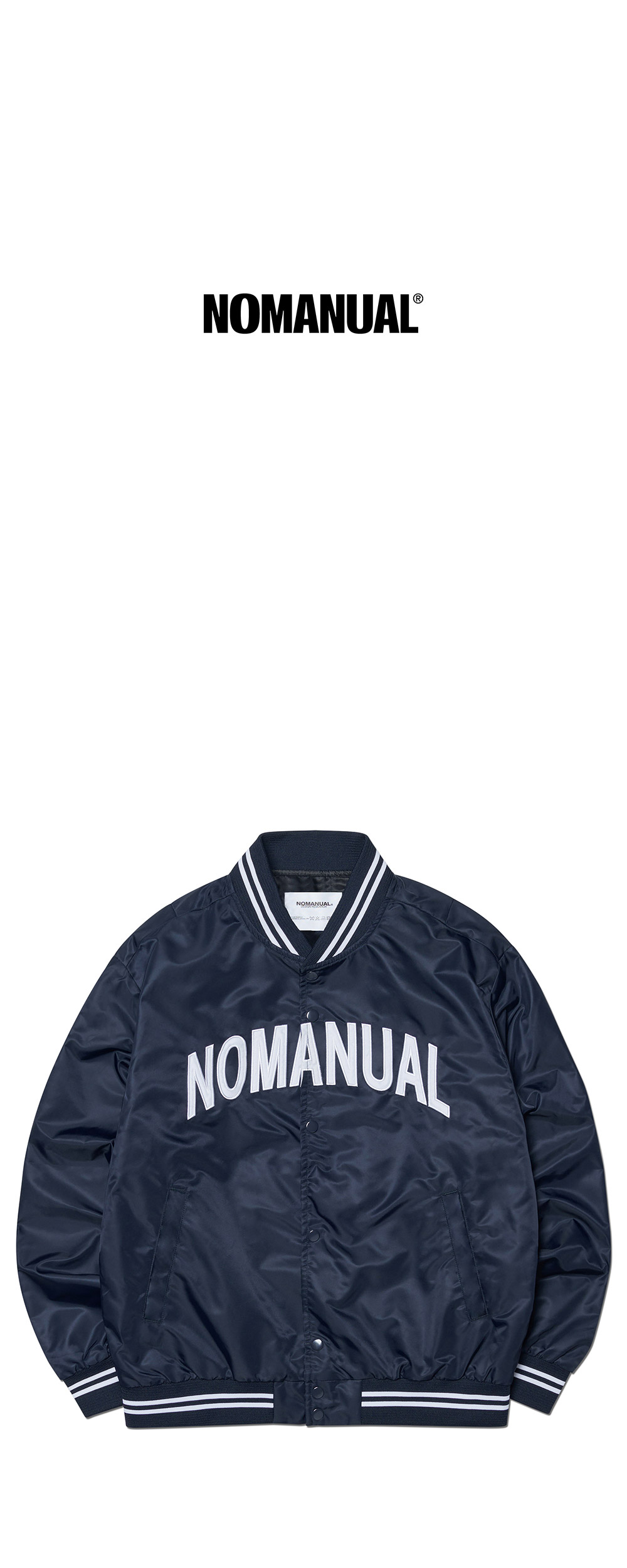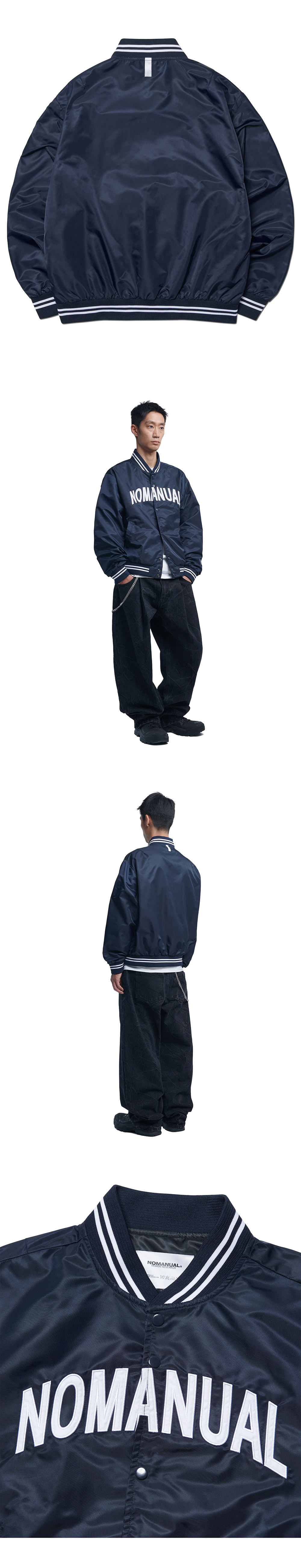 노매뉴얼 아치 로고 바시티 자켓 네이비
