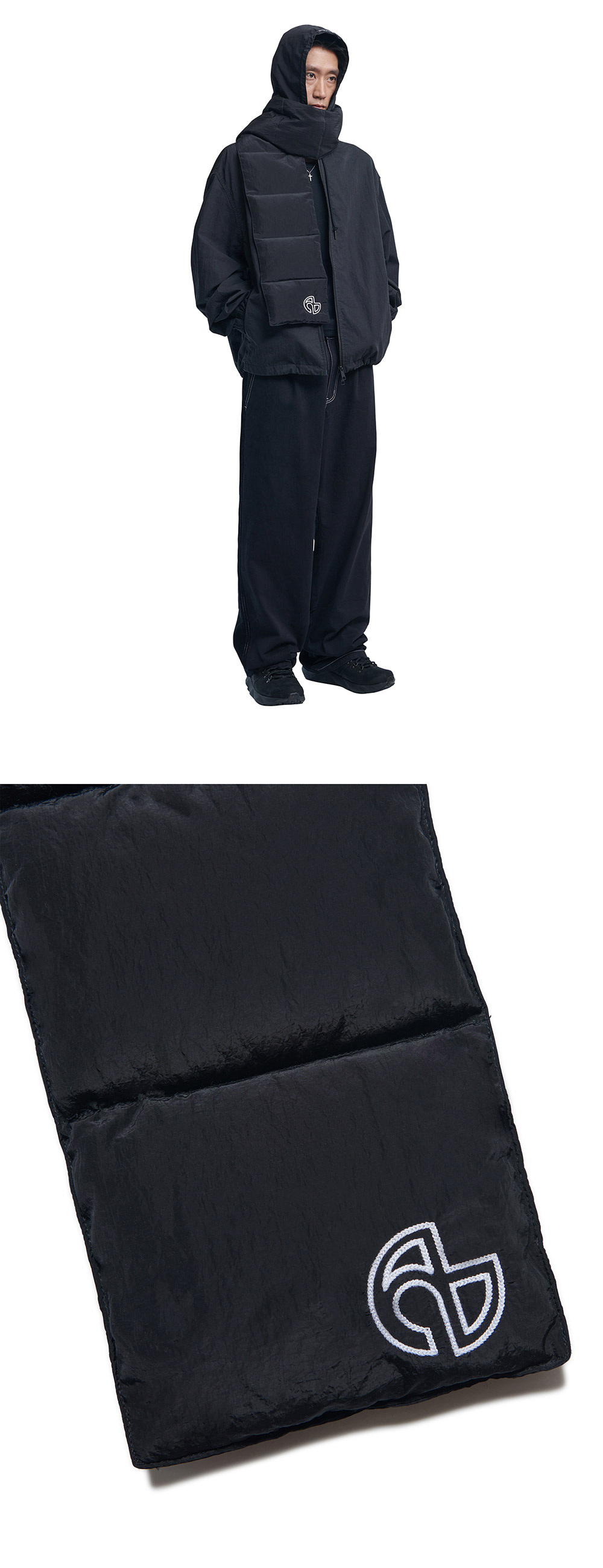 노매뉴얼 L.S.S 나일론 덕다운 머플러 블랙