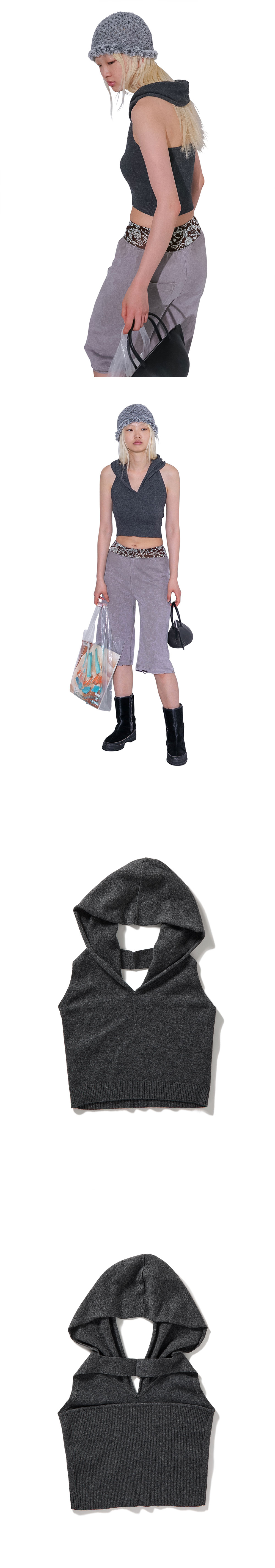 퍼버즈 우먼 크롭 후디 니트 탑 그레이 - 25FW