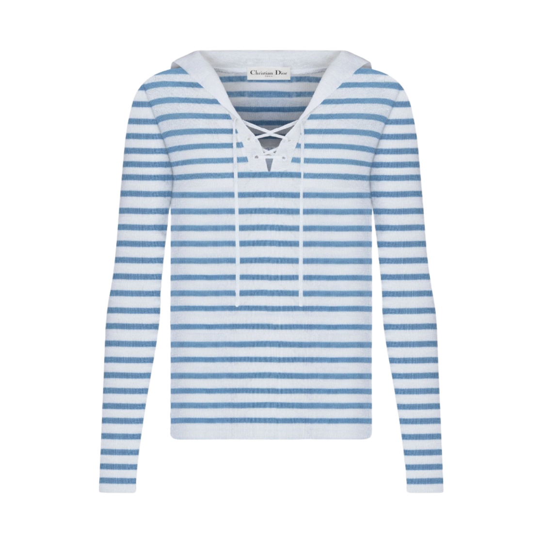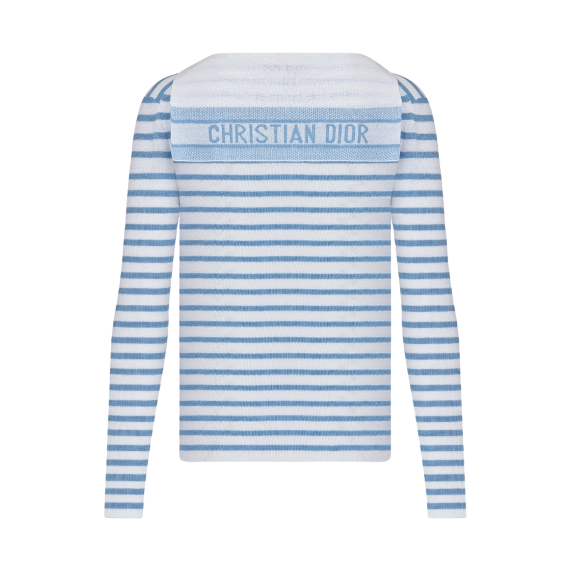 (W) Dior Mariniere Sweater Linen Cashmere Slik Cornflower Blue Ecru