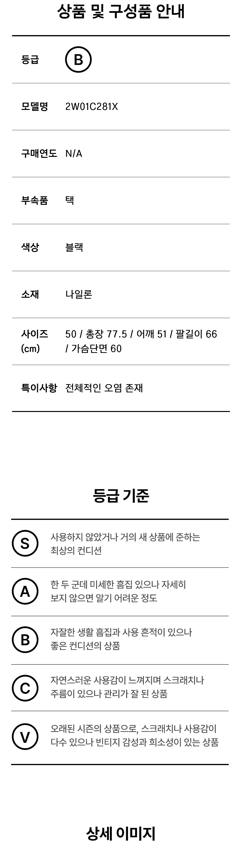 모든 상품(가죽, 의류, 잡화, 슈즈 등)은 사용자의 사용방법과 환경에 따라 변형, 변색이 될 수 있으니 반드시 취급 라벨에 표시된 관리 안내를 따르시길 권장 드립니다. 이는 정도의 차이가 있으며 과도한 체열과 땀, 습기, 빛, 마찰은 제품의 손상 및 변형을 일으킬 수 있으므로 주의하시길 바랍니다.