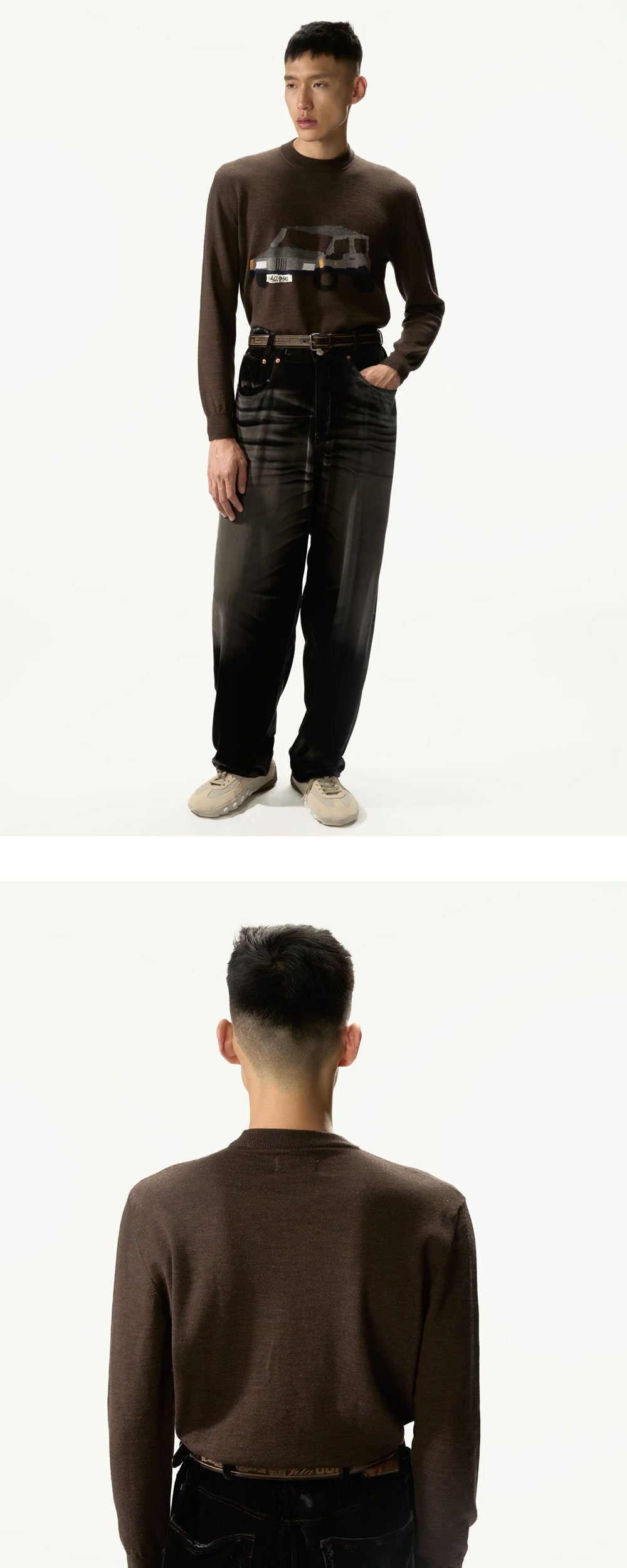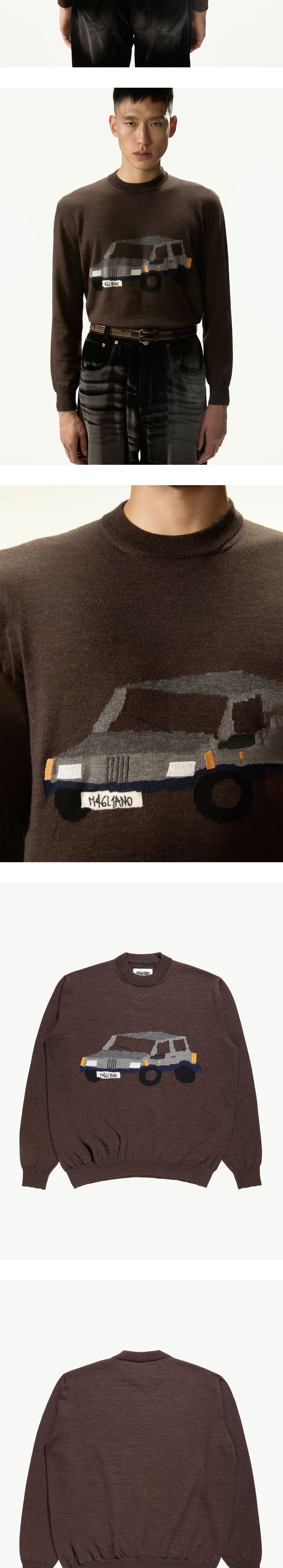 딥한 브라운 컬러가 고급스러운 마리아노의 판디노 니트입니다. -크루넥 디자인 -자카드 니트 스웨터 -울 100%