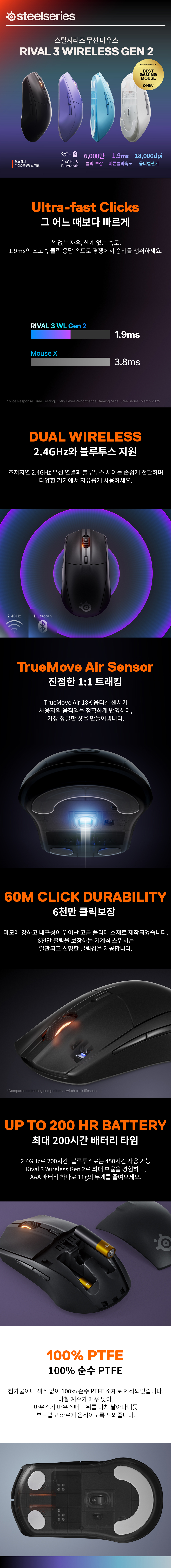 스틸시리즈 Rival 3 Gen2 무선 게이밍 마우스 블랙