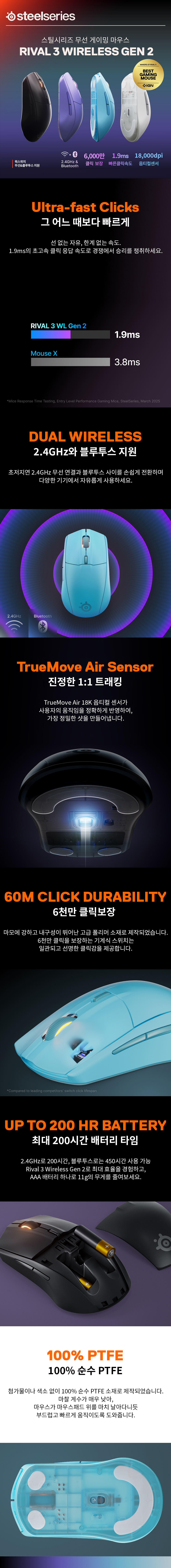 스틸시리즈 Rival 3 Gen2 무선 게이밍 마우스 아쿠아