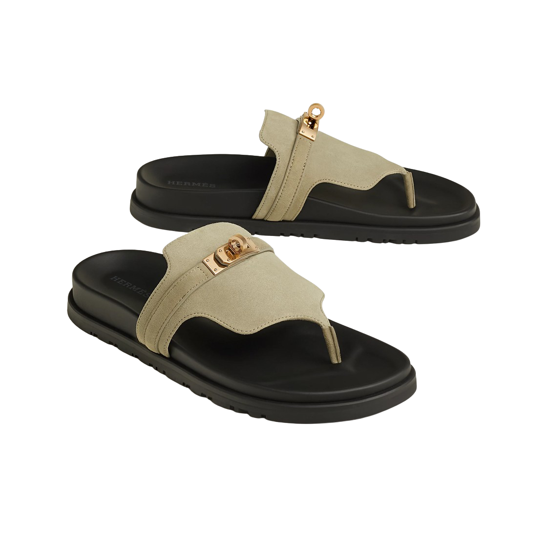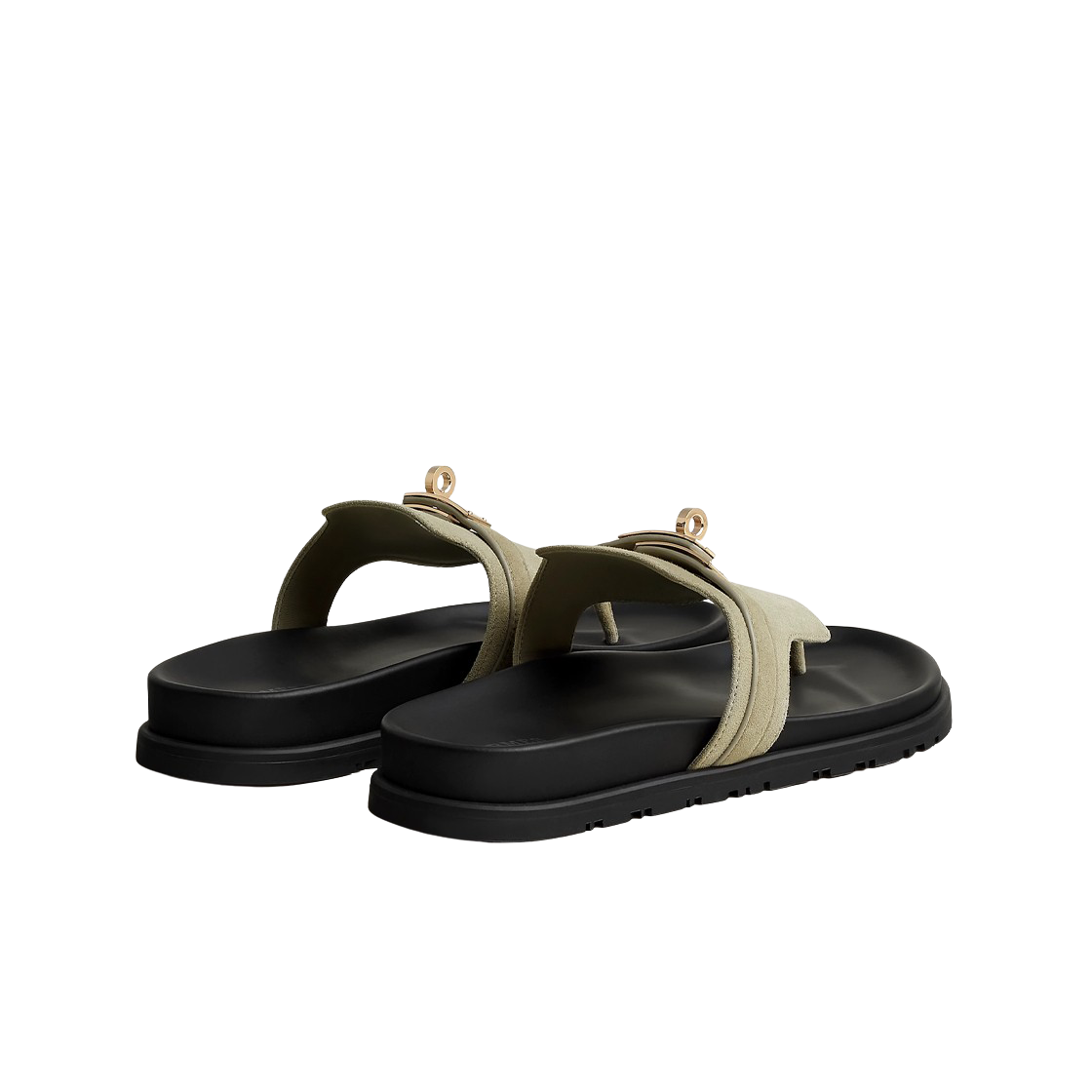 (W) Hermes Empire Sandal Suede Goatskin & Permabrass Vert Mosaique