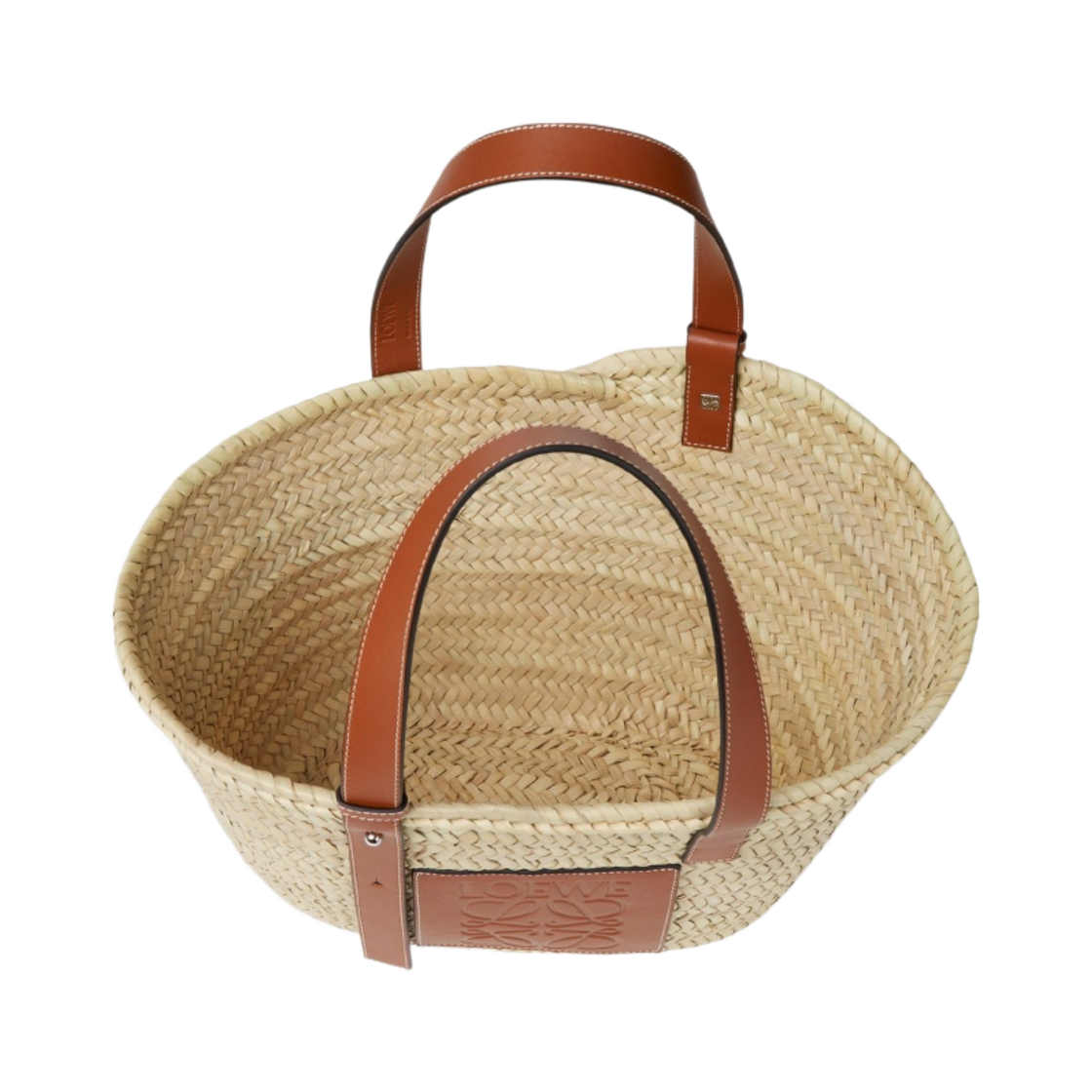 로에베 베스킷백 팜 리프 앤 카프스킨 내츄럴 탄