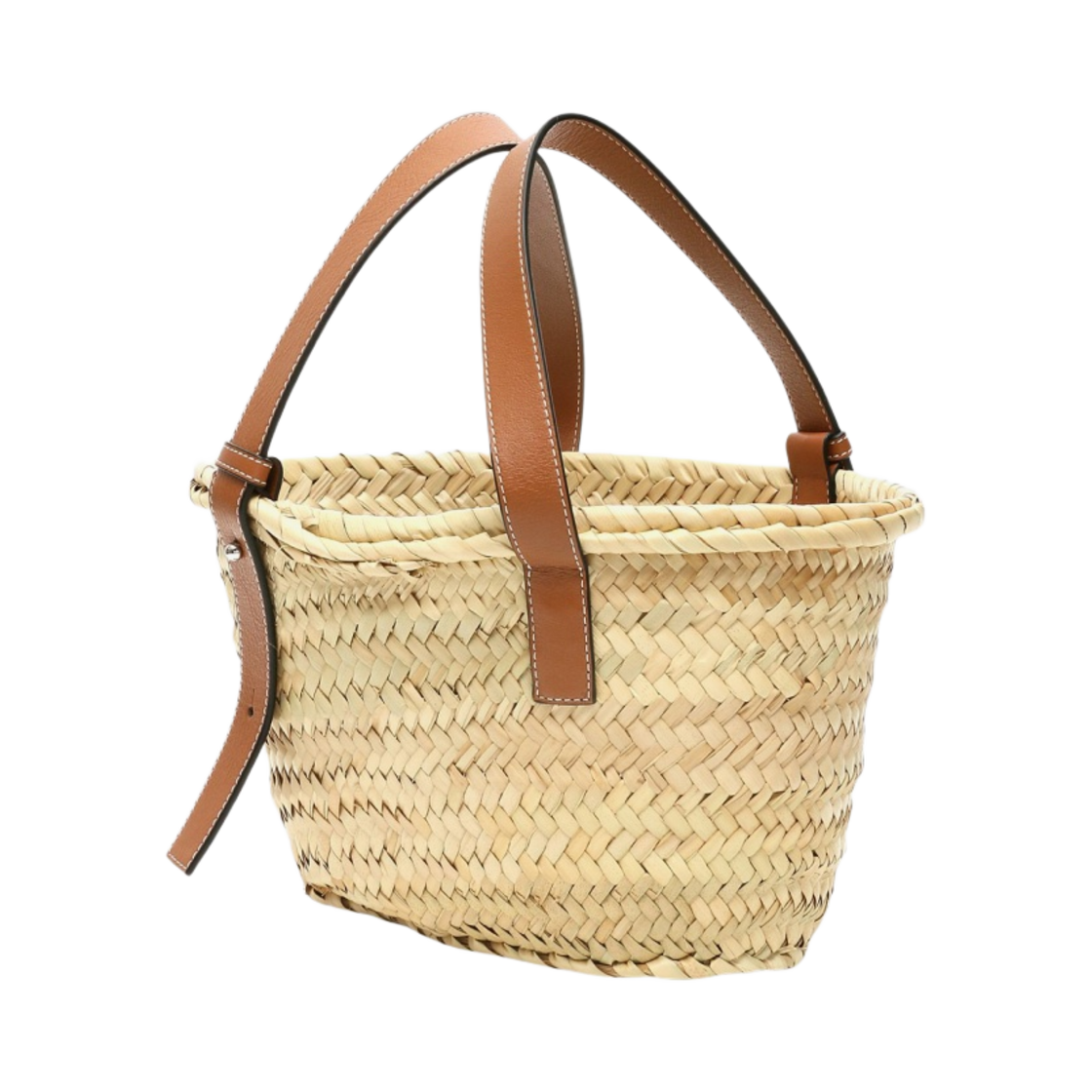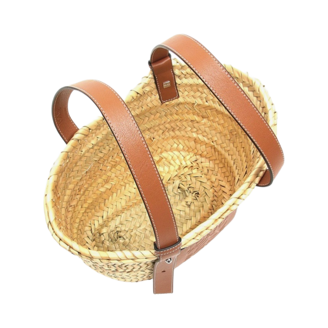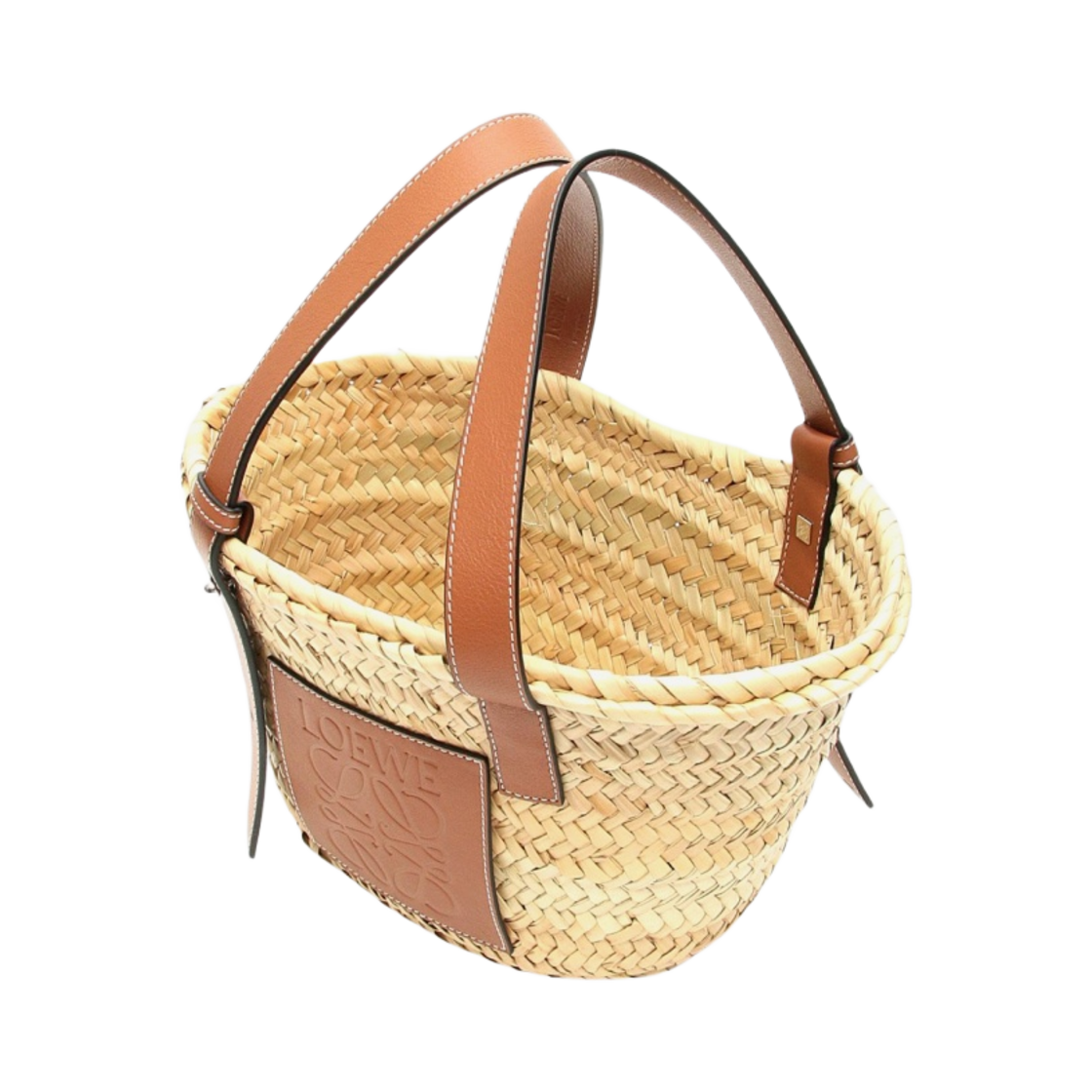 로에베 스몰 베스킷백 팜 리프 앤 카프스킨 내츄럴 탄