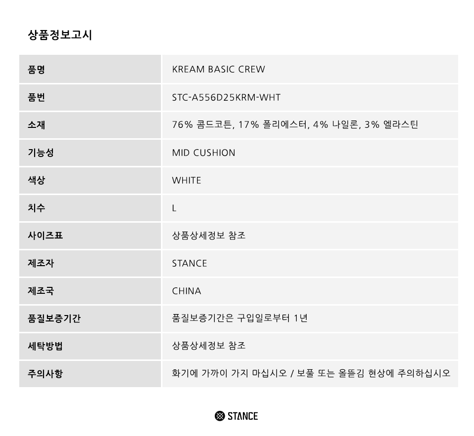 스탠스 X 크림 베이직 크루 화이트