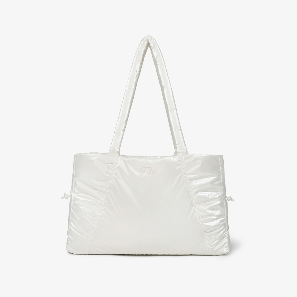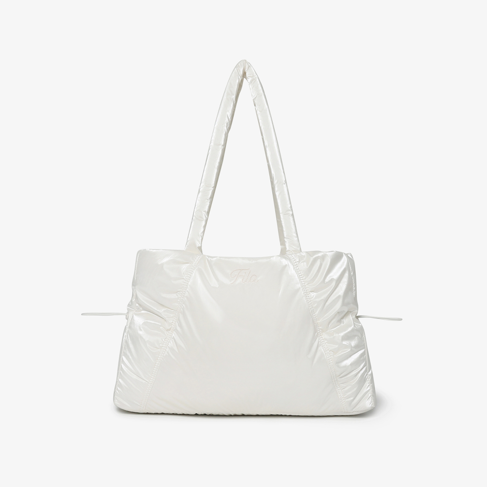 [6% 적립] FILA Glossy Shirring Shoulder Bag White