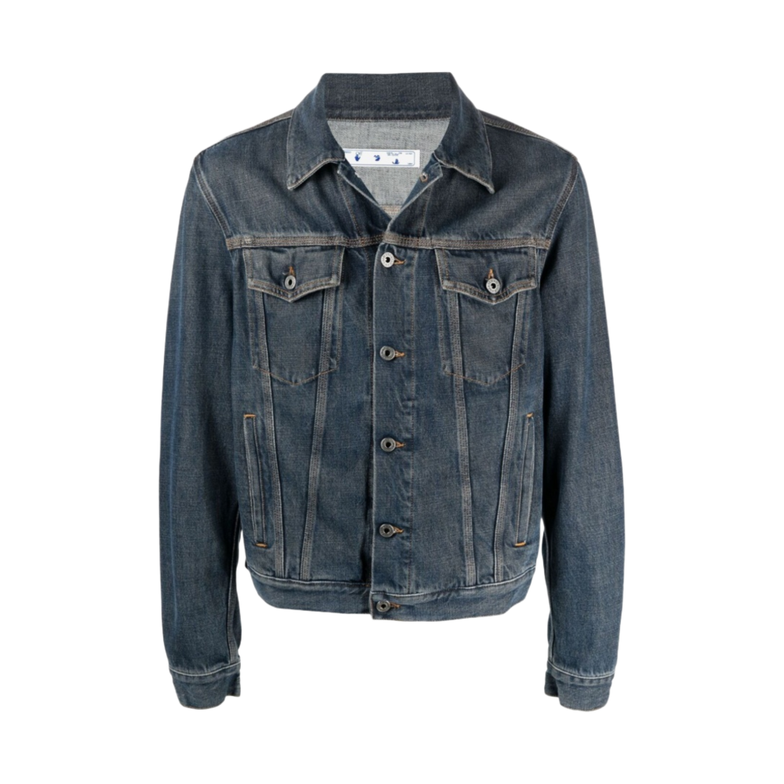 오프화이트 OW 로고 슬림 데님 자켓 인디고 블루 화이트