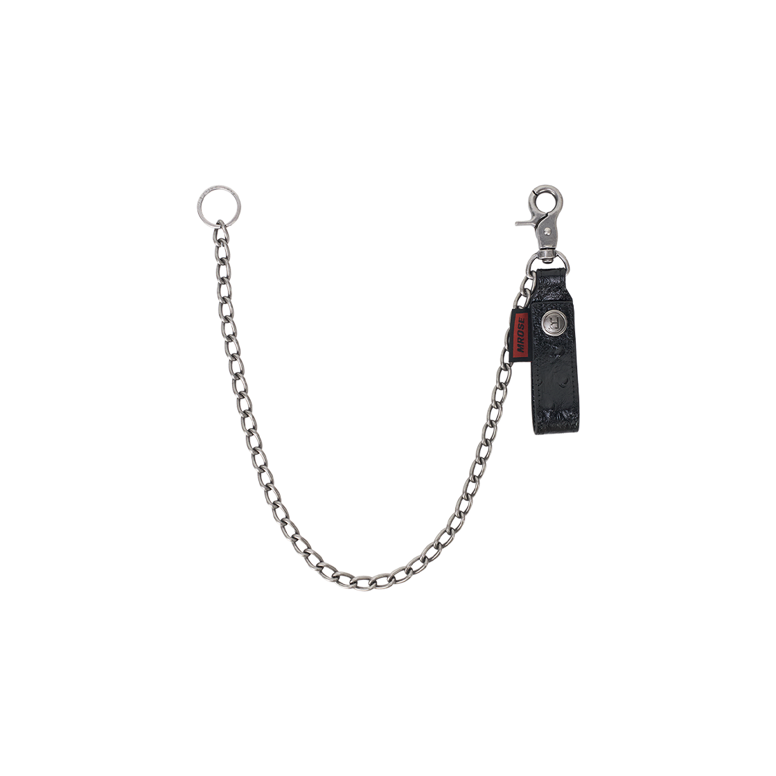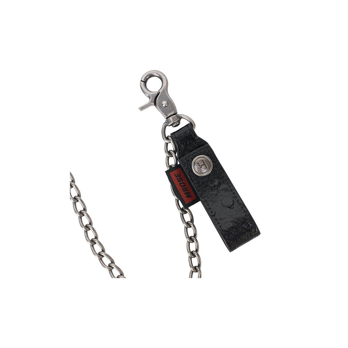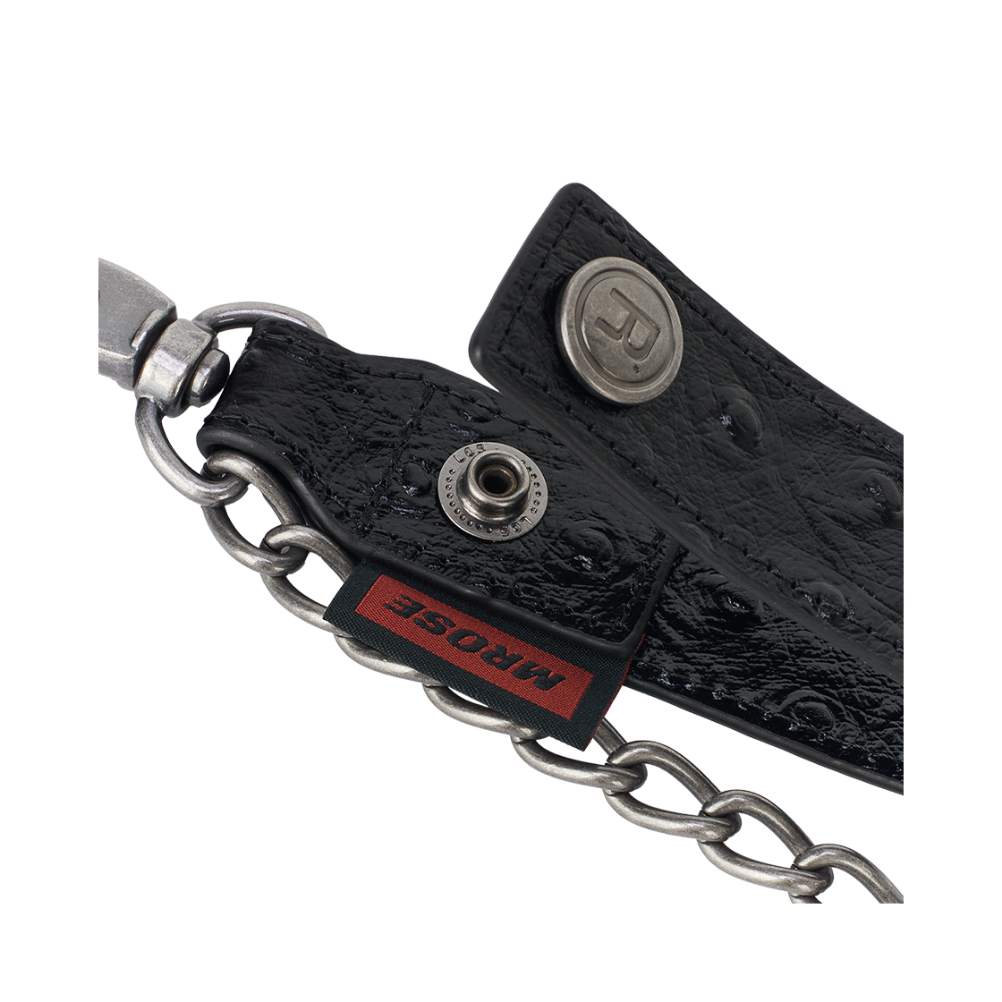 블랙 가죽 스트랩과 메탈 체인의 조화가 멋스러운 마틴 로즈 본디지 클립 체인 블랙 컬러입니다. - 커스텀 메탈 스냅 버튼 - 스냅 버튼으로 여닫는 레더 스트랩 - 스트랩 상단 레드 컬러 로고 라벨 - 견고한 메탈 체인 - 카라비너형 클립