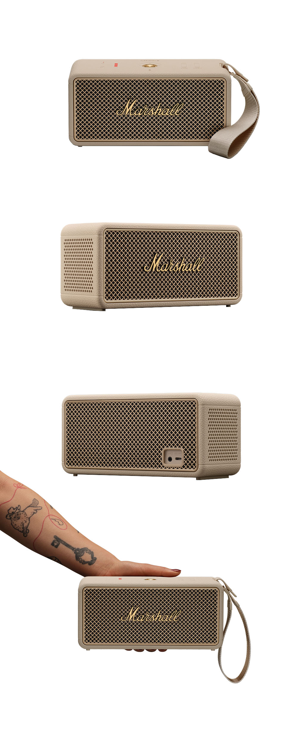 마샬 Middleton II는 30시간 배터리와 IP67 방진·방수 기능을 갖춘 휴대용 블루투스 스피커로, 360도 입체음향과 다용도 조작 노브를 지원합니다. 보조 배터리 기능으로 스마트폰 충전도 가능하며, 클래식한 디자인과 고음질 사운드를 제공합니다.
