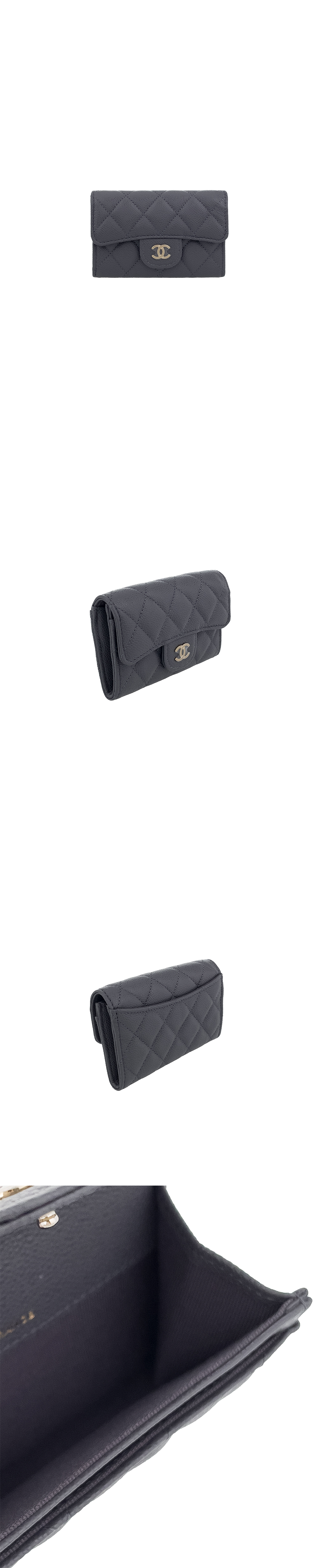 샤넬 클래식 카드지갑 그레이 샴페인골드 캐비어