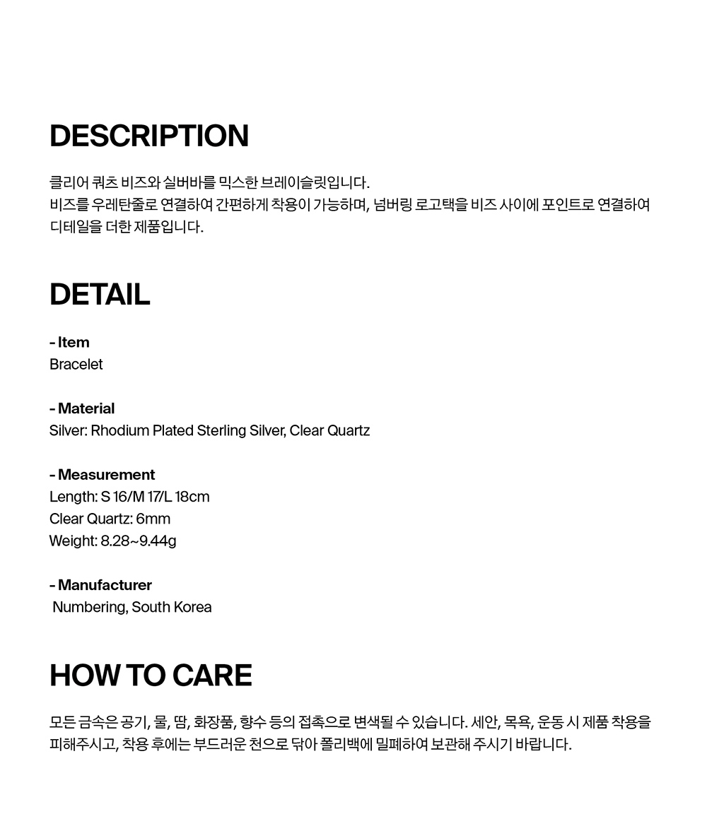 넘버링 #7909 클리어 쿼츠 브레이슬릿 실버