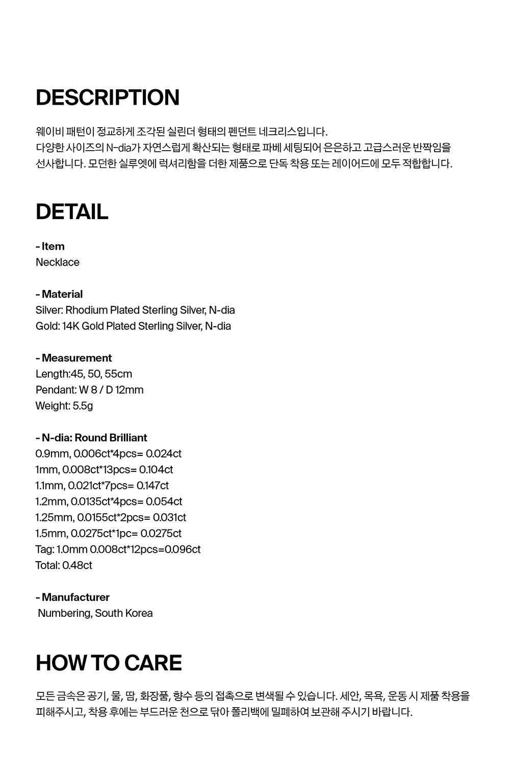 넘버링 #3818 파베 스컬럽티드 웨이브 실린더 네크리스 실버