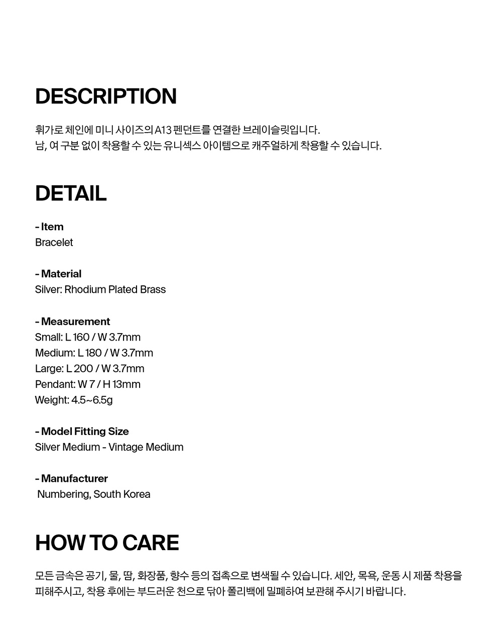 넘버링 #5946 휘가로 체인 브레이슬릿 위드 A13 로고 실버