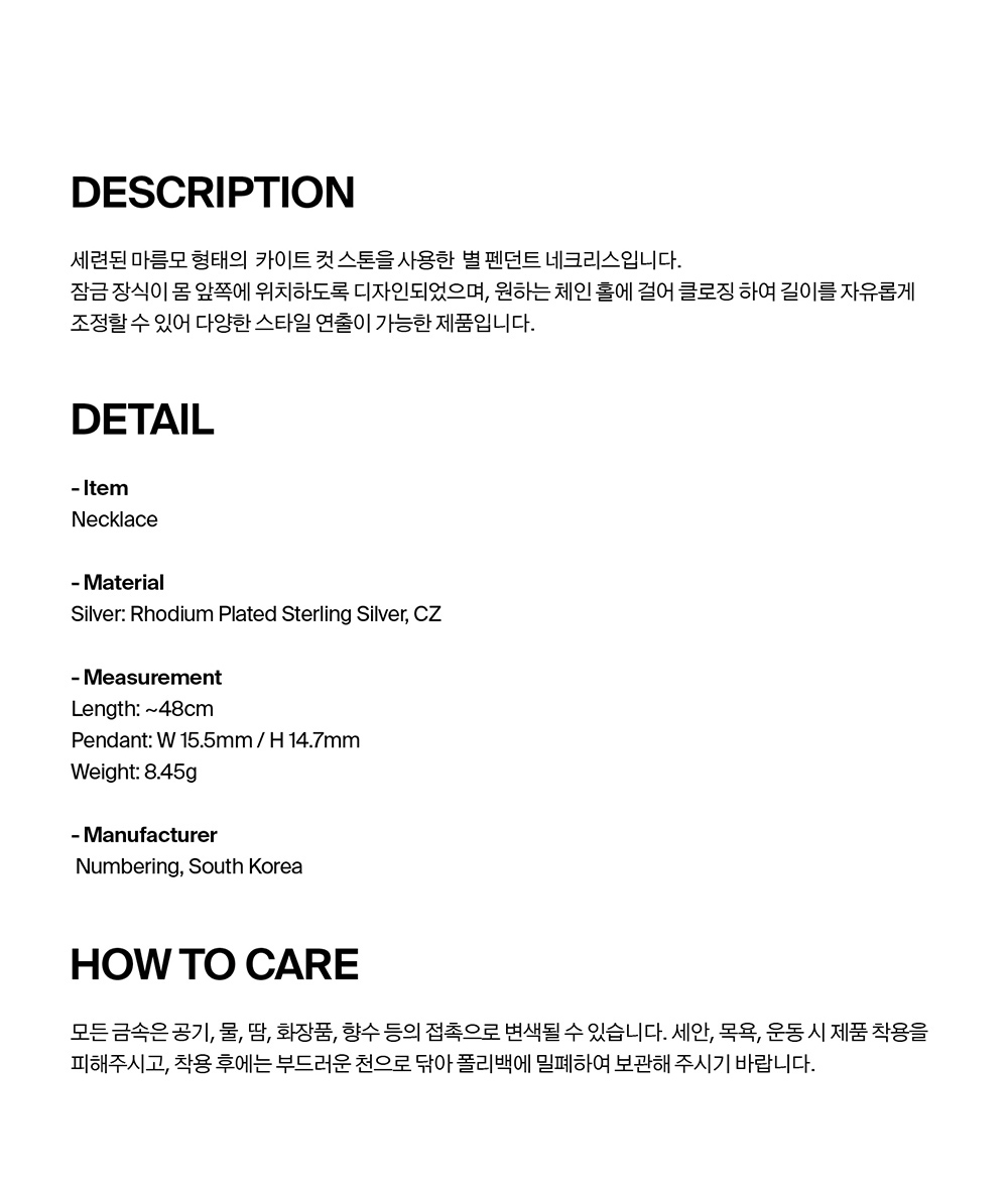 넘버링 #7740 브릴리언트 스타 펜던트 네크리스 실버