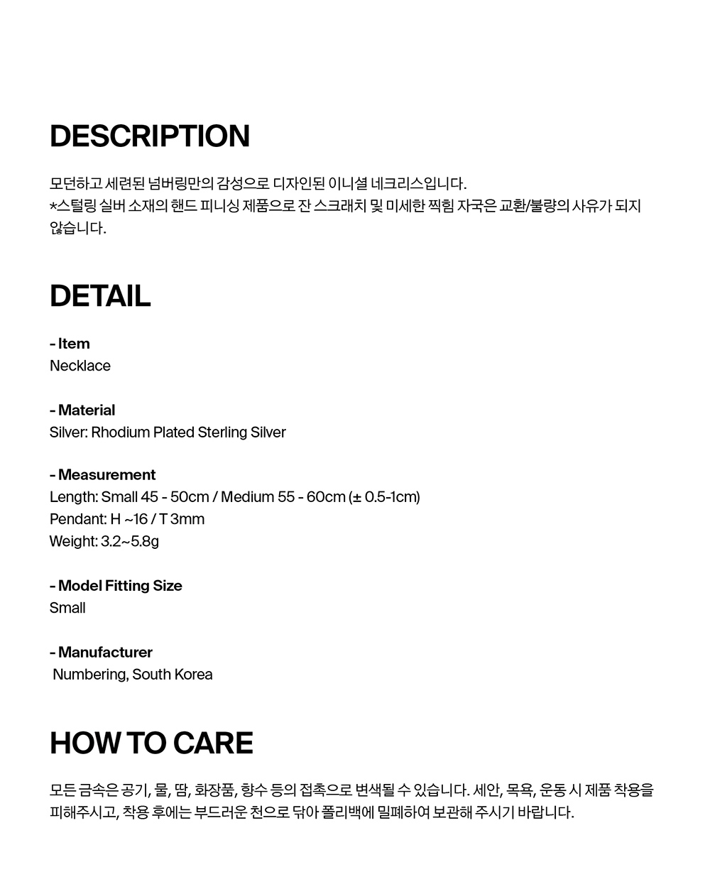 넘버링 #7700 미디엄 아웃라인 이니셜 네크리스 실버