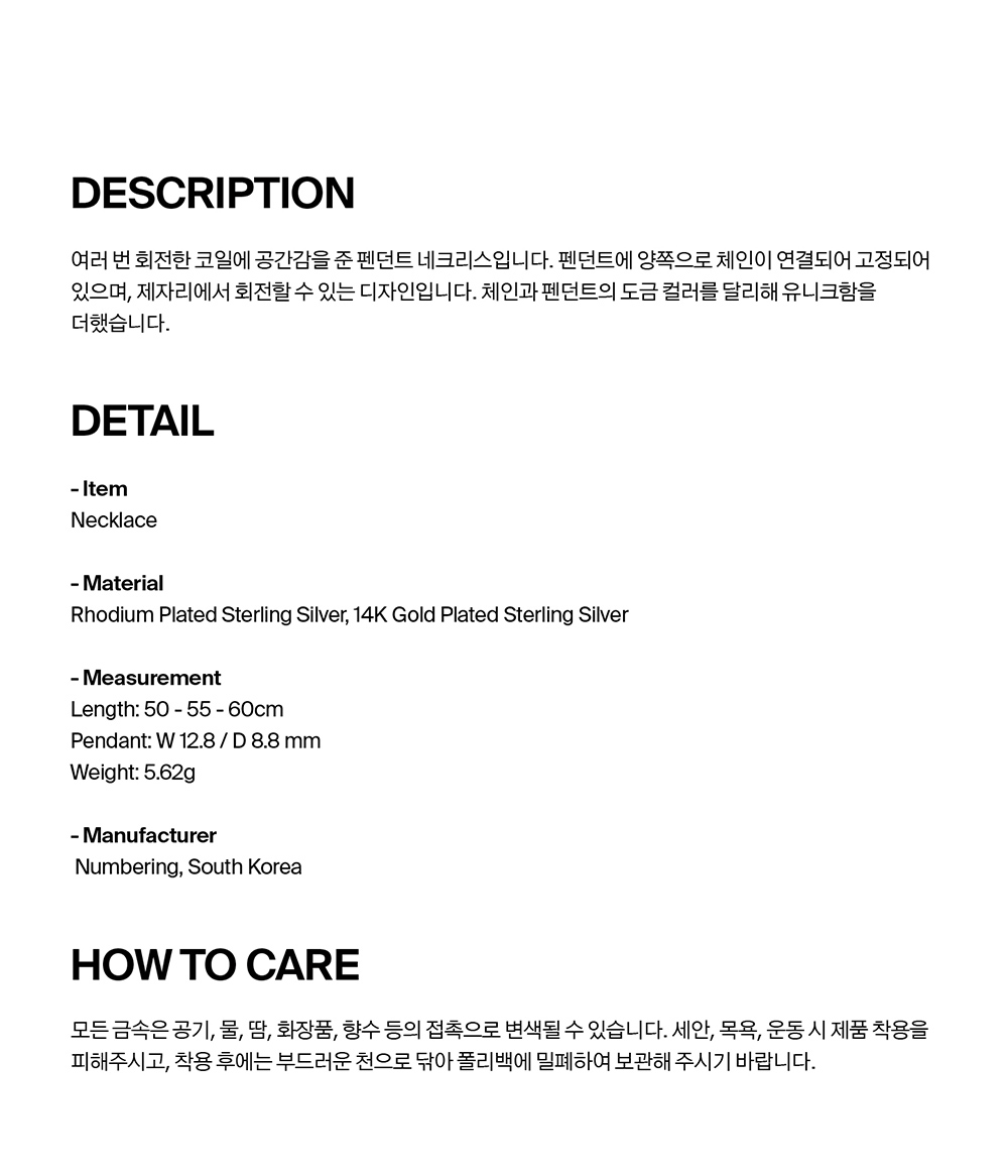 넘버링 #8701 와이어 코일 펜던트 네크리스 콤비