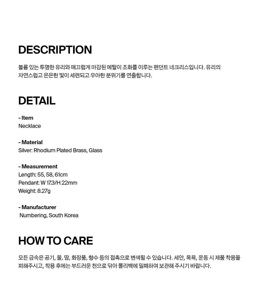 넘버링 #5755 미디엄 이클립스 글래스 펜던트 네크리스 실버