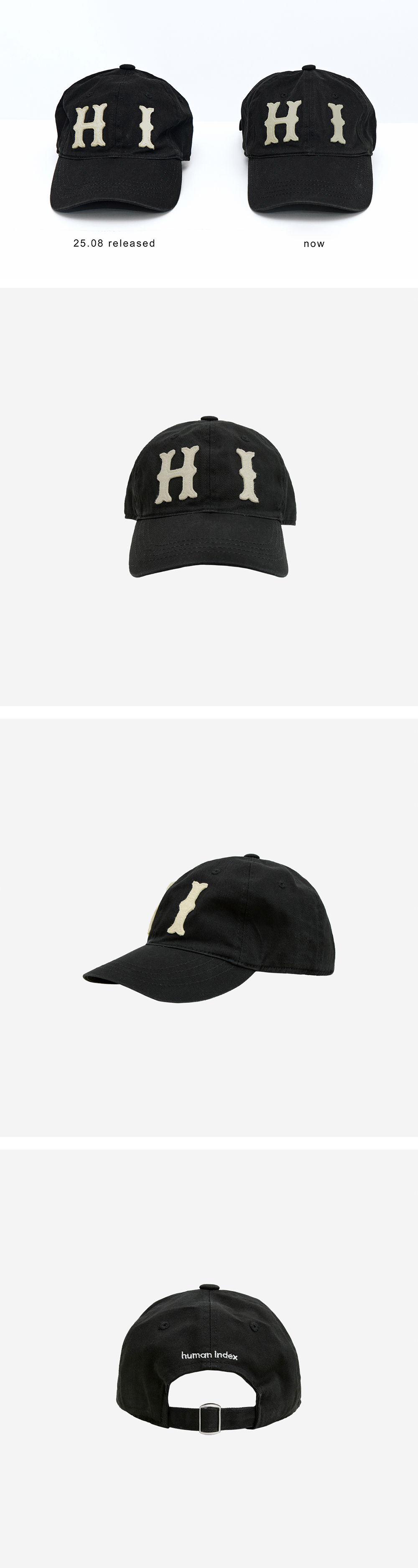 HI Cap (Classic Fit) * 빈티지 베이스볼 캡 모티브로 완성한 클래식 핏 볼캡 * 전면 'HI" 아플리케 패치 * 빈티지한 워싱 마감 * 사이즈 조절 끈으로 둘레 조정 가능 *남성모델: 180 초반 / 마른 체형 *여성모델: 170 초반 / 마른 체형