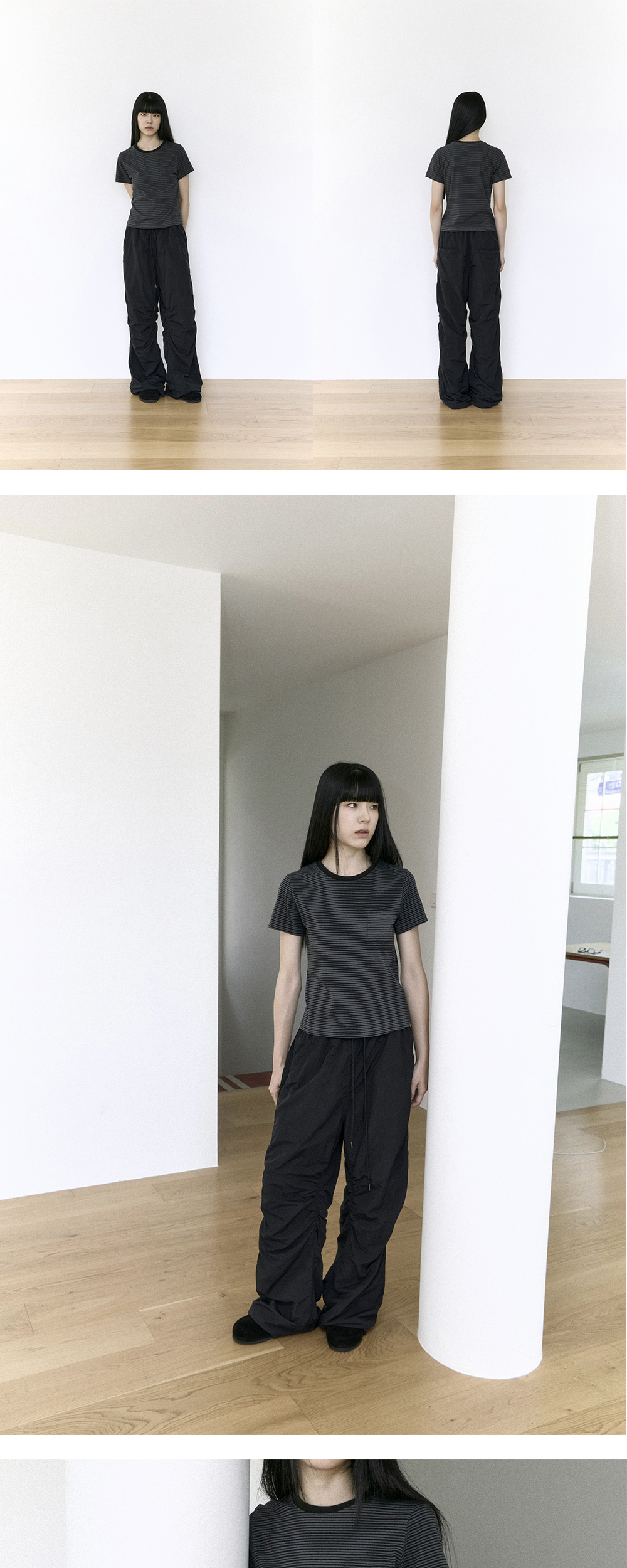본 제품은 티셔츠류 중 일반적인 두께감과 탄력을 지닌 상품으로, 강한 워싱이 적용되지 않아 일반적인 환경에서의 유지·관리가 비교적 용이한 편입니다.