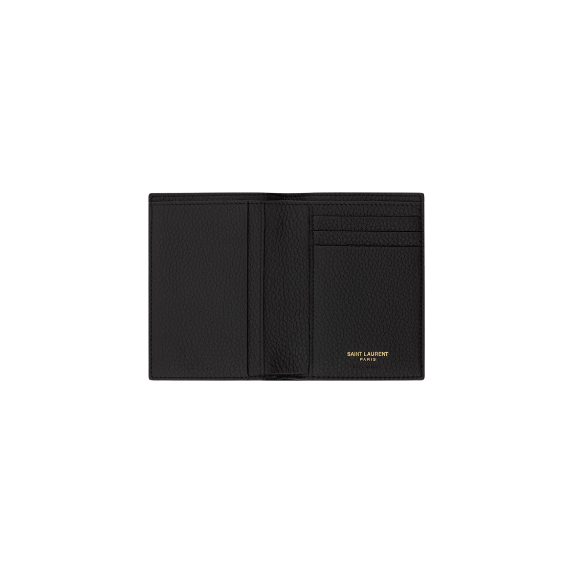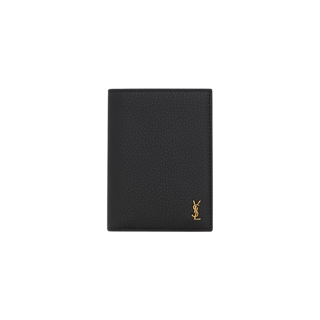 Saint Laurent Grained Leather Tiny Cassandre Credit Card Wallet Black