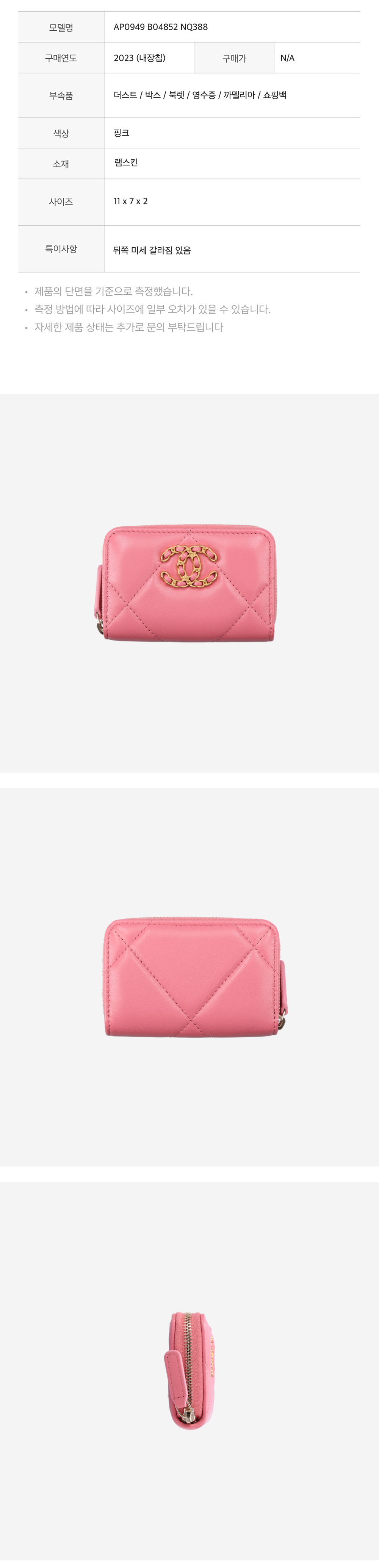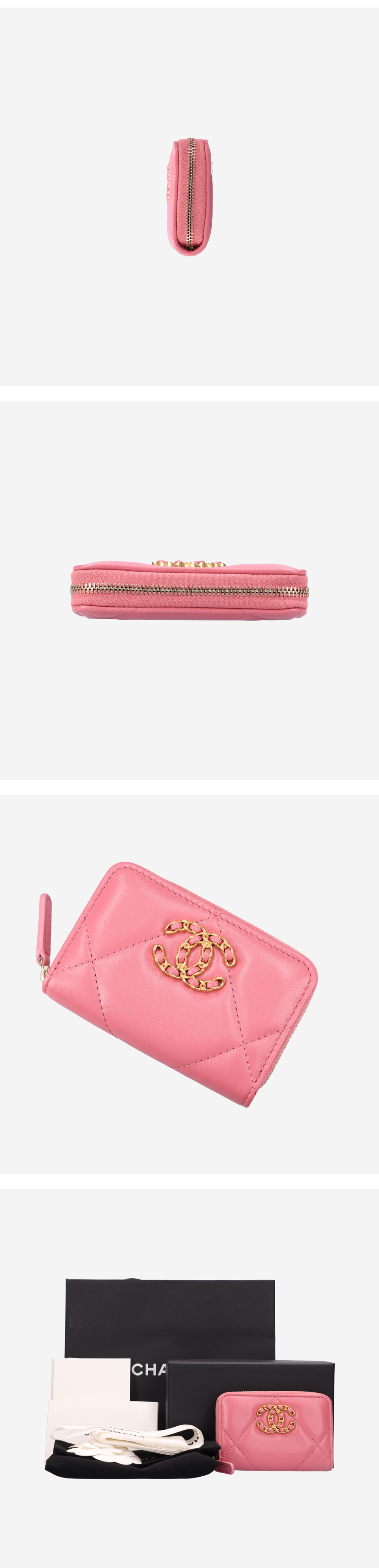샤넬 AP0949 19 지퍼 코인 지갑 램스킨 핑크 금장