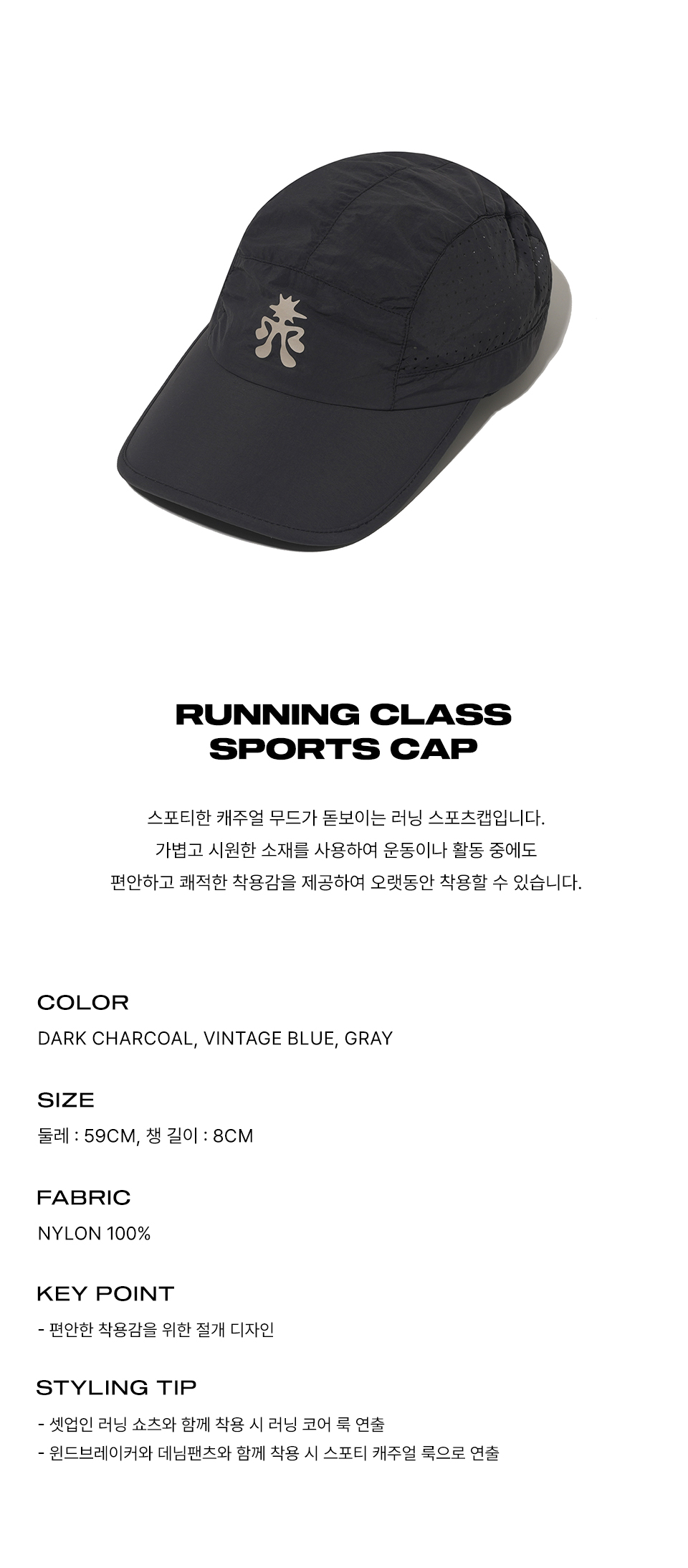 피지컬 디파트먼트 러닝 클래스 스포츠 캡 다크 차콜