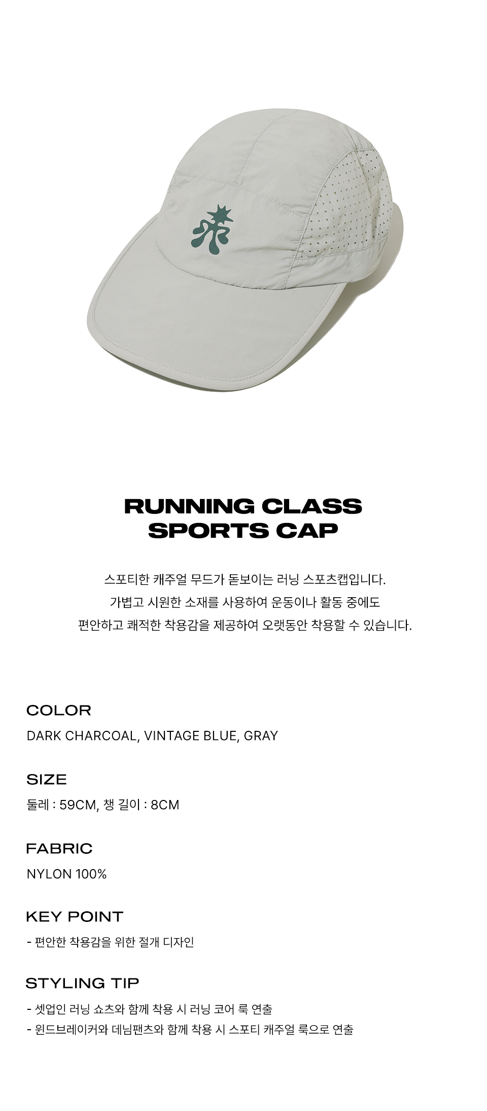 피지컬 디파트먼트 러닝 클래스 스포츠 캡 솔리드 그레이