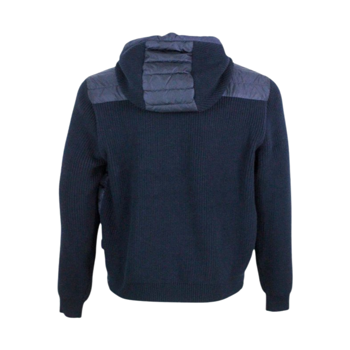 Add Hooded Knit texture Combination Padded Cardigan Dark Blue
