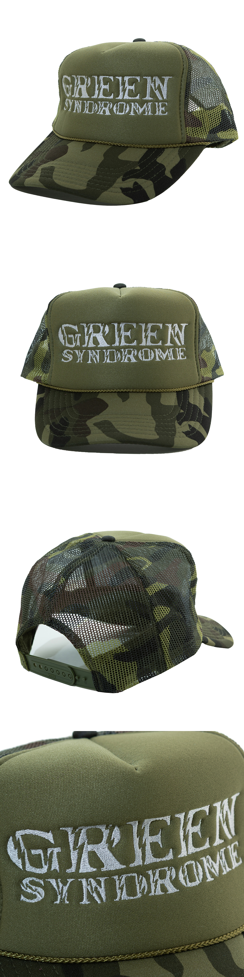 GREEN SYNDROME LT LOGO TRUCKER CAP CAMO