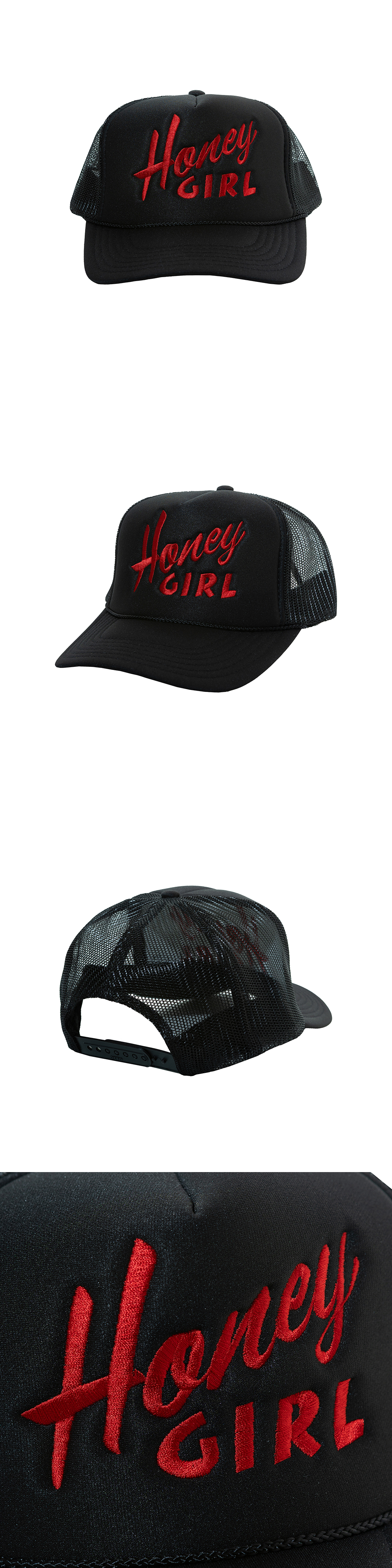 허니스쿱하우스 허니 걸 로고 트러커 캡 블랙