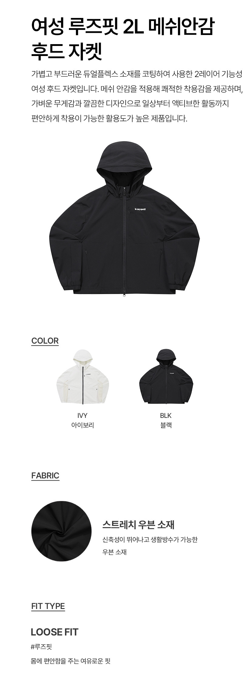 르꼬끄 스포르티브 여성 루즈핏 2L 메쉬안감 후드 자켓 - 아이보리(QQ322OJK81)