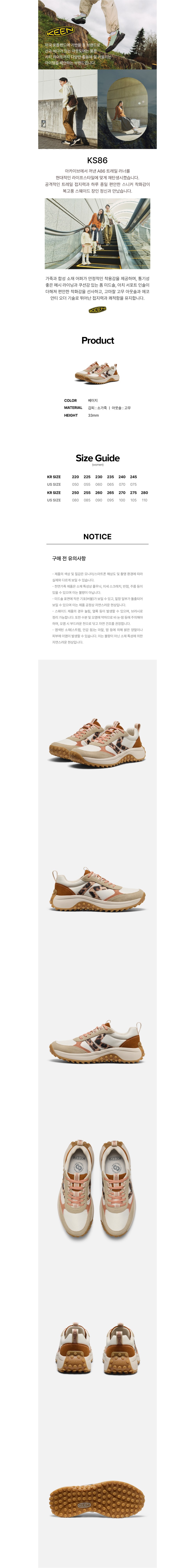 킨 KS86 여성 스니커즈 버치 코르크