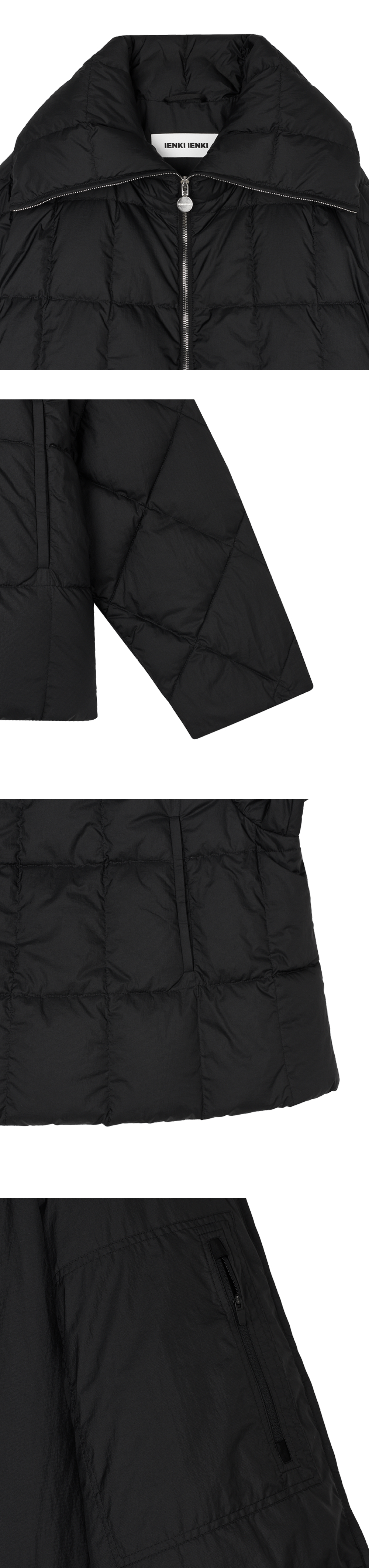 옌키 옌키 우먼 코지 아르코 자켓 마이크로 블랙입니다. - 충전재: 화이트 구스 다운 90%, 깃털 10% - 발수 및 방풍 기능성 원단 - 히든 포켓 2개 - 여밈: 지퍼 클로저