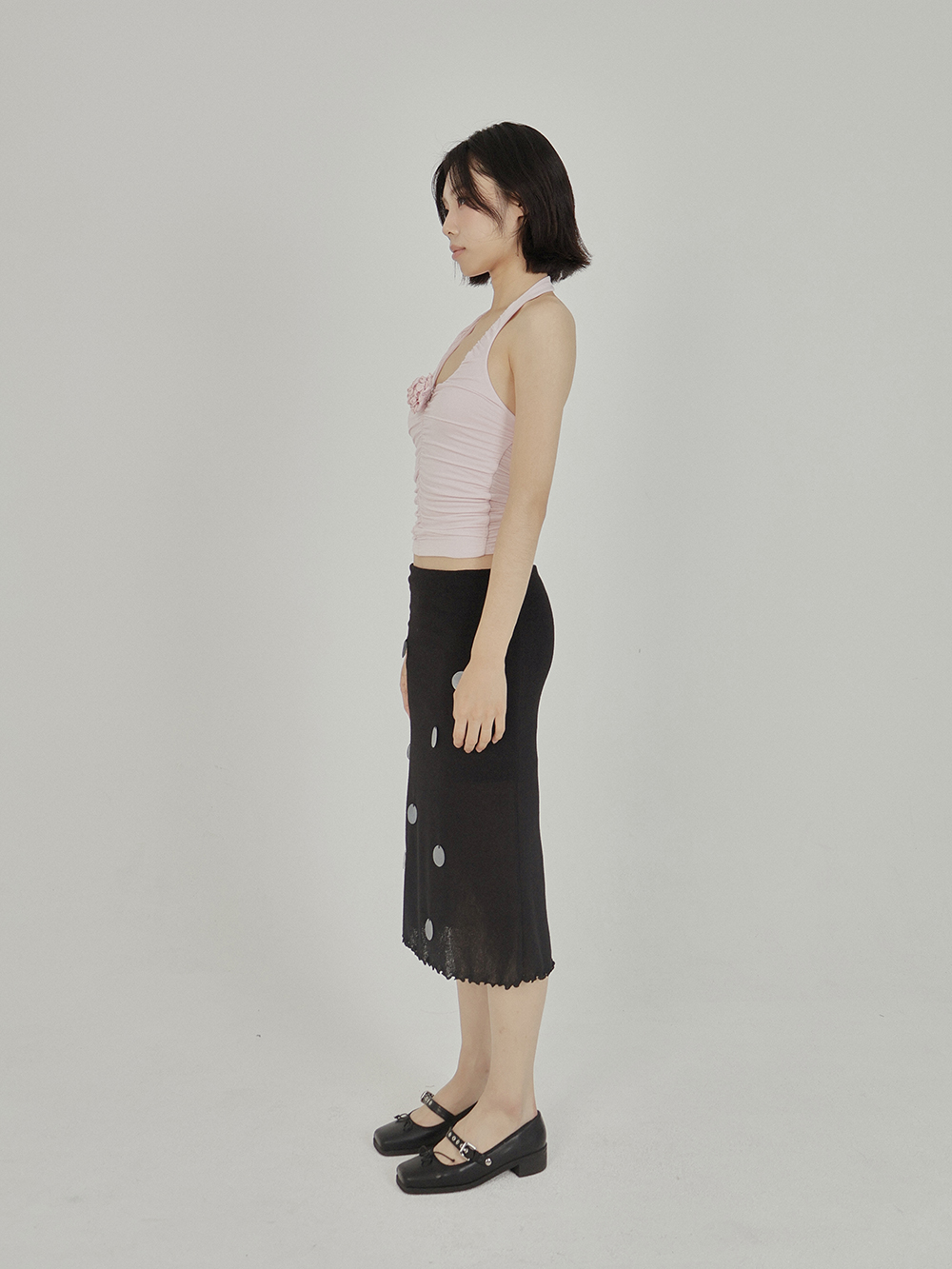아수라 서클 니트 스커트 블랙