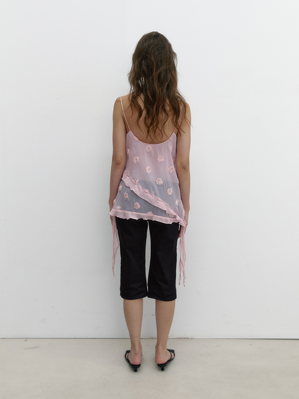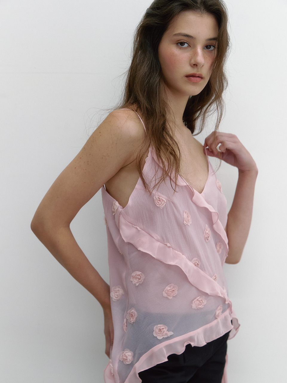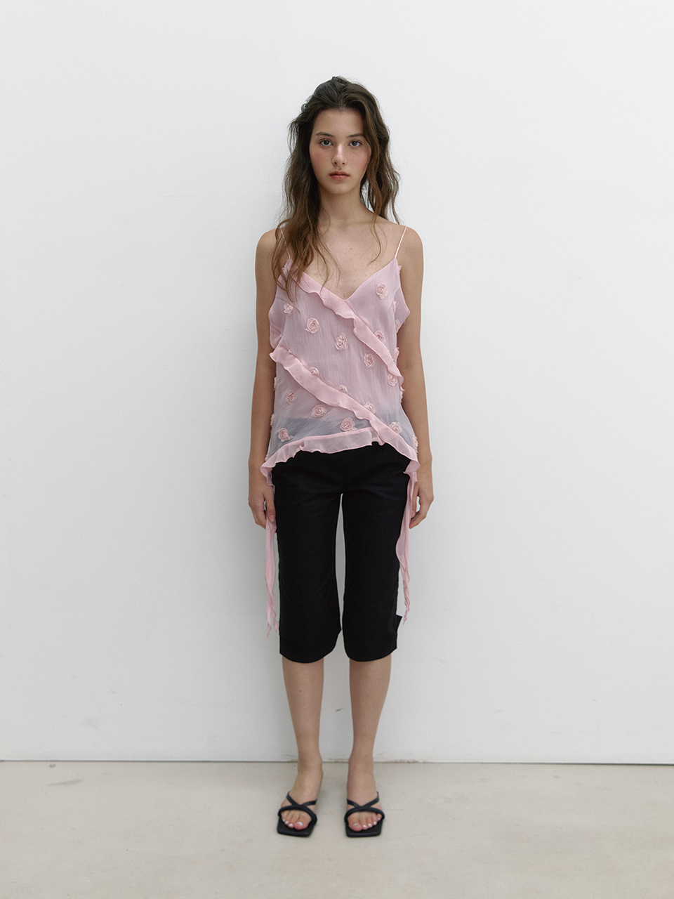 아수라 플라워 쉬폰 러플 블라우스 핑크
