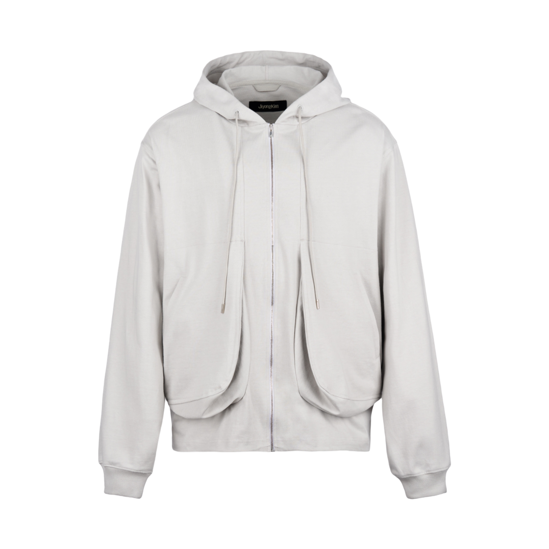 지용 킴 드레이프드 포켓 집업 후드 오프 화이트