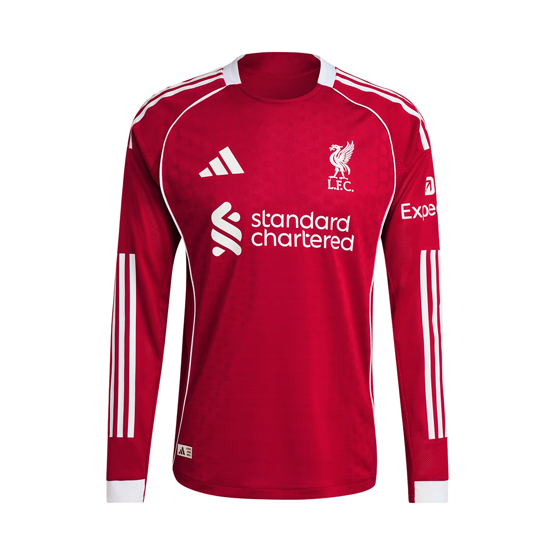 아디다스 리버풀 FC 2025/26 홈 어센틱 롱슬리브 저지 스트로베리 레드 - US 사이즈 (논 마킹 버전)