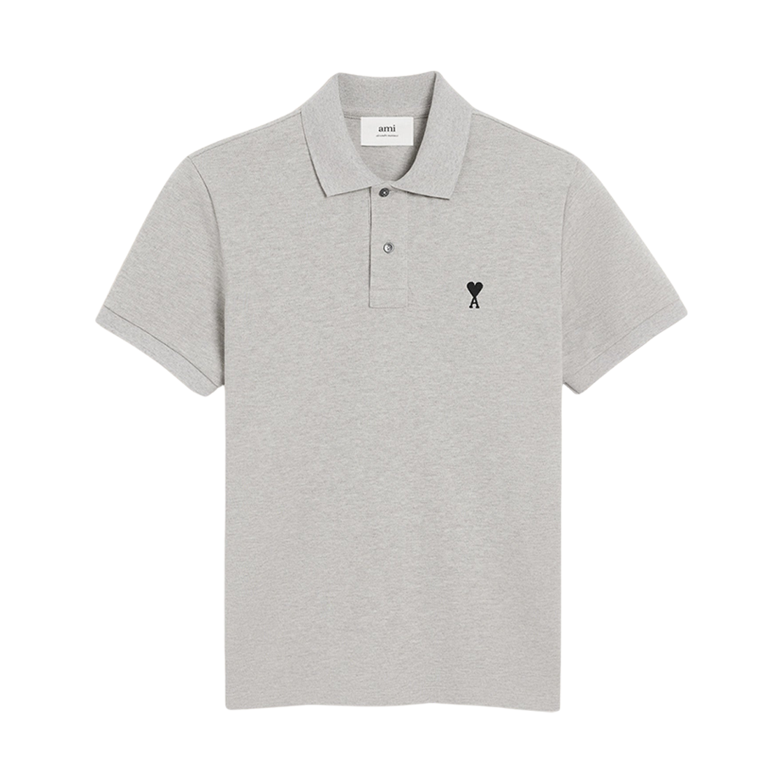 아미 스몰 하트 로고 코튼 피케 콘트라스트 폴로 셔츠 헤더 애쉬 그레이 블랙